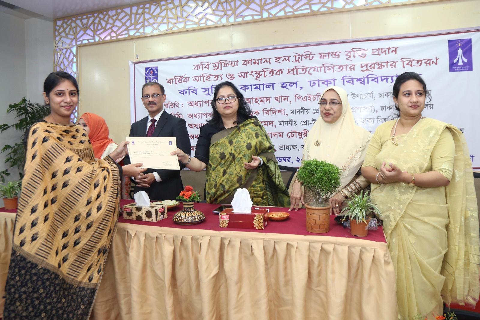 ঢাকা বিশ্ববিদ্যালয়ের বিভিন্ন বিভাগ ও বর্ষের ৬৩ জন ছাত্রীকে কবি সুফিয়া কামাল হল ট্রাস্ট ফান্ড বৃত্তি প্রদান করা হয়েছে। স্নাতক (সম্মান) পরীক্ষায় অসাধারণ ফলাফলের জন্য ১ জন ছাত্রী কবি সুফিয়া কামাল হল ট্রাস্ট ফান্ড স্বর্ণপদক এবং ১৫ জন ছাত্রী মেধা বৃত্তি লাভ করেছেন। এছাড়া, বিভিন্ন বর্ষের ৪০ জন ছাত্রীকে সাধারণ বৃত্তি এবং সহ-শিক্ষামূলক কার্যক্রমে পারদর্শিতার জন্য ৮ জন ছাত্রীকে সহ-পাঠ্যক্রম বৃত্তি প্রদান করা হয়। ঢাকা বিশ্ববিদ্যালয়ের উপাচার্য অধ্যাপক ড. নিয়াজ আহমদ খান গতকাল ১০ নভেম্বর ২০২৫ সোমবার সন্ধ্যায় হল মিলনায়তনে আয়োজিত এক অনুষ্ঠানে প্রধান অতিথি হিসেবে উপস্থিত থেকে ছাত্রীদের হাতে বৃত্তির চেক তুলে দেন।