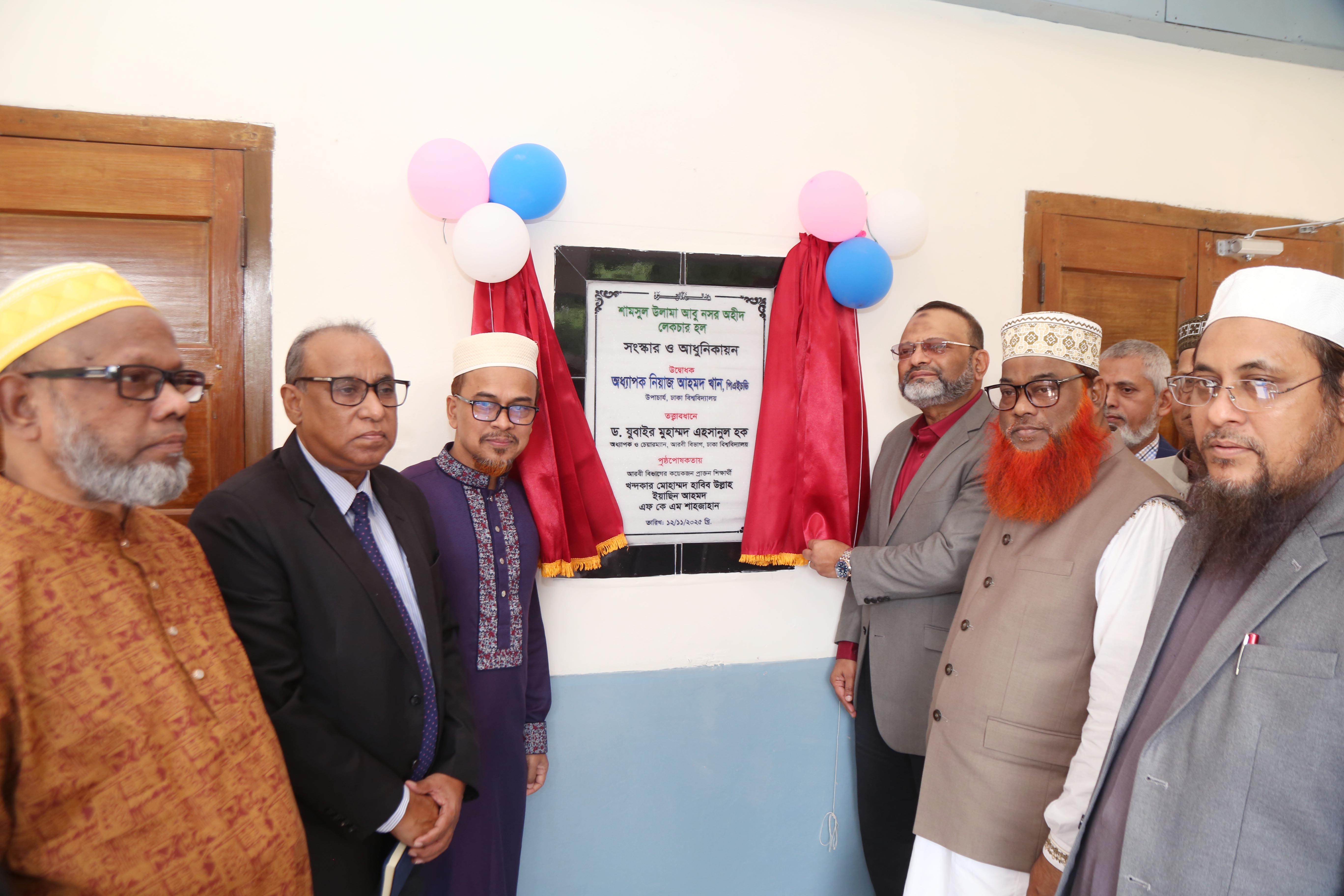 এর আগে, উপাচার্য আরবী বিভাগের সংস্কারকৃত শামসুল উলামা আবু নসর অহীদ লেকচার হল এবং অধ্যাপক আ ন ম আব্দুল মান্নান খান সেমিনার লাইব্রেরি উদ্বোধন করেন। আরবী বিভাগের কয়েকজন প্রাক্তন শিক্ষার্থীর আর্থিক সহায়তায় বিভাগের লেকচার হল এবং লাইব্রেরি আধুনিকায়ন ও সংস্কারের কাজ করা হয়।