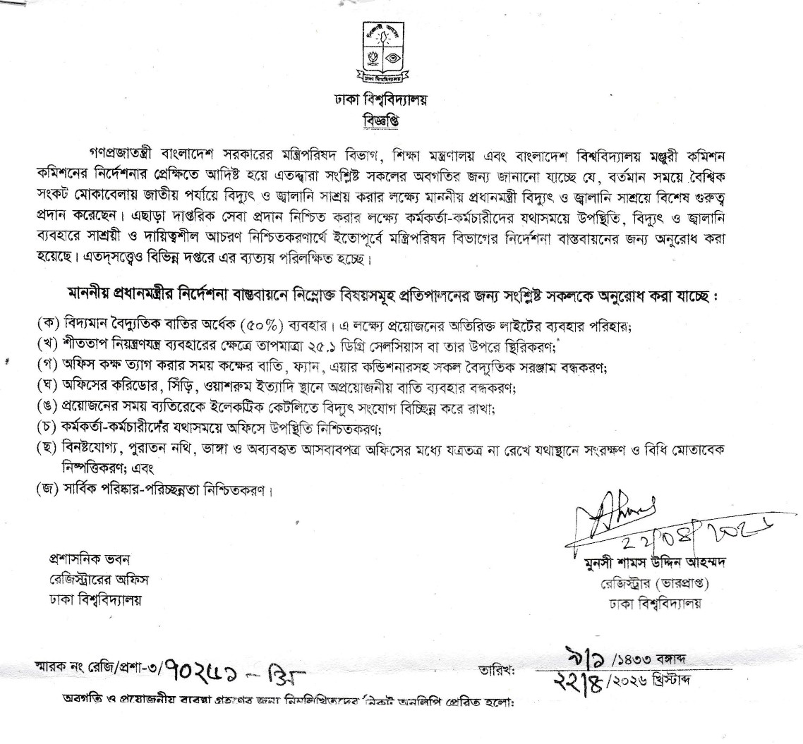 Email: vcoffice@du.ac.bd, registrar@du.ac.bd