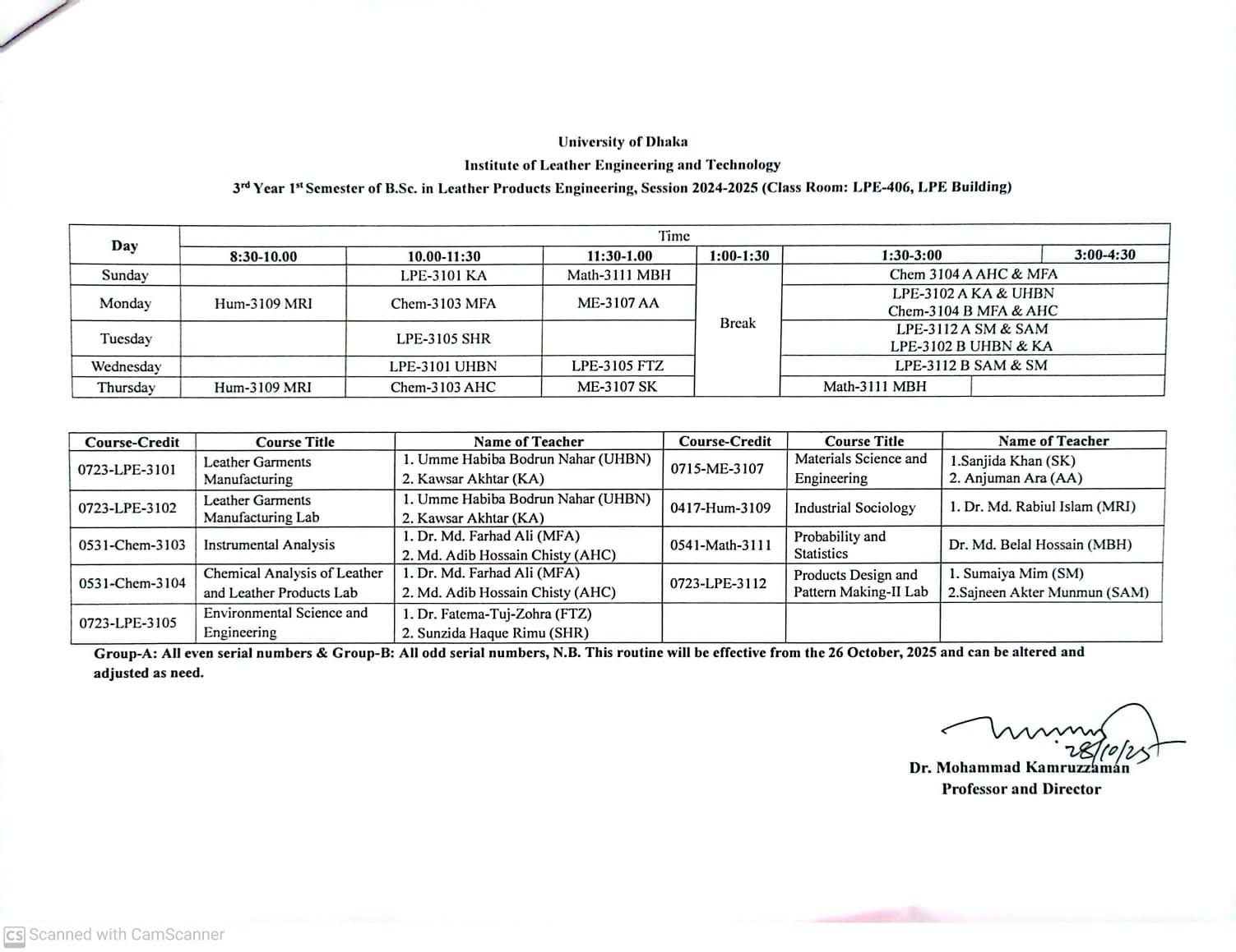 3rd Year 1st Semester B.Sc. in LE/FE/LPE-2025: class routine