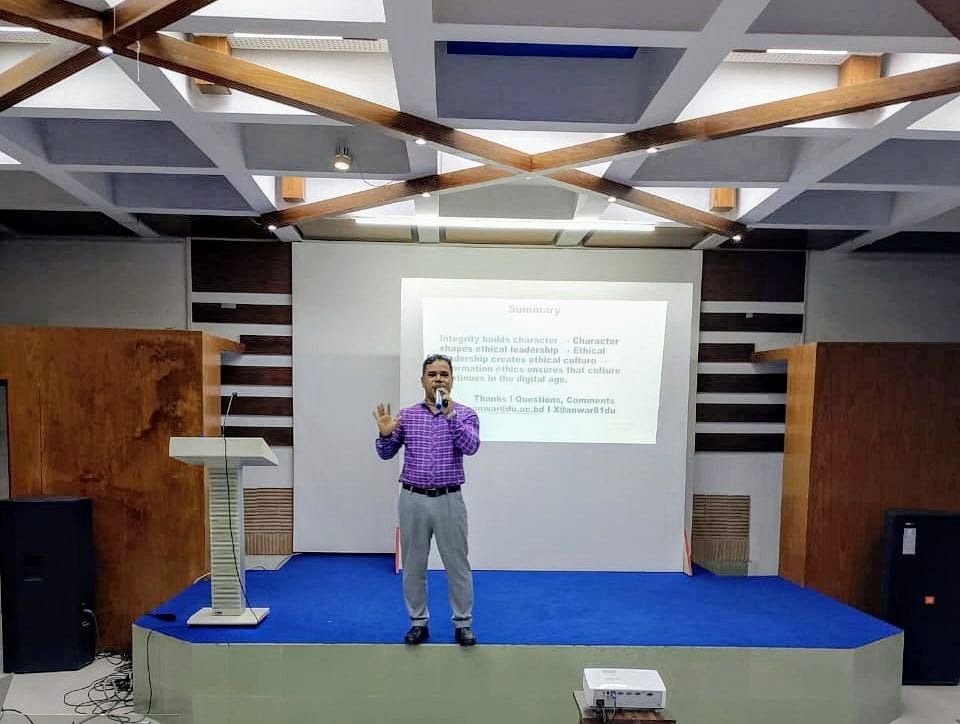 শিক্ষা ও গবেষণা ইনস্টিটিউট এর পরিচালক অধ্যাপক হোসনে আরা বেগম “Ethics in Students Assessment & Exam System” বিষয়ে দ্বিতীয় দিনের প্রথম সেশন পরিচালনা করেন। তিনি শিক্ষার্থী মূল্যায়ন, পরীক্ষা পরিচালনা এবং একাডেমিক স্বচ্ছতার নৈতিক কাঠামো নিয়ে আলোচনা করেন। পরবর্তী সেশনে আইকিউএসির অতিরিক্ত পরিচালক অধ্যাপক ড. মো. সাইফুল আলম “Ethics in University Governance and Institutional Responsibility” বিষয়ে আলোচনা করেন।