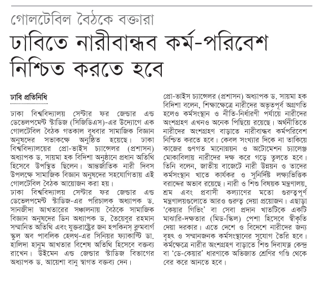 অর্থনীতিতে নারীর অংশগ্রহণ বাড়াতে নারীবান্ধব কর্মপরিবেশ জরুরি