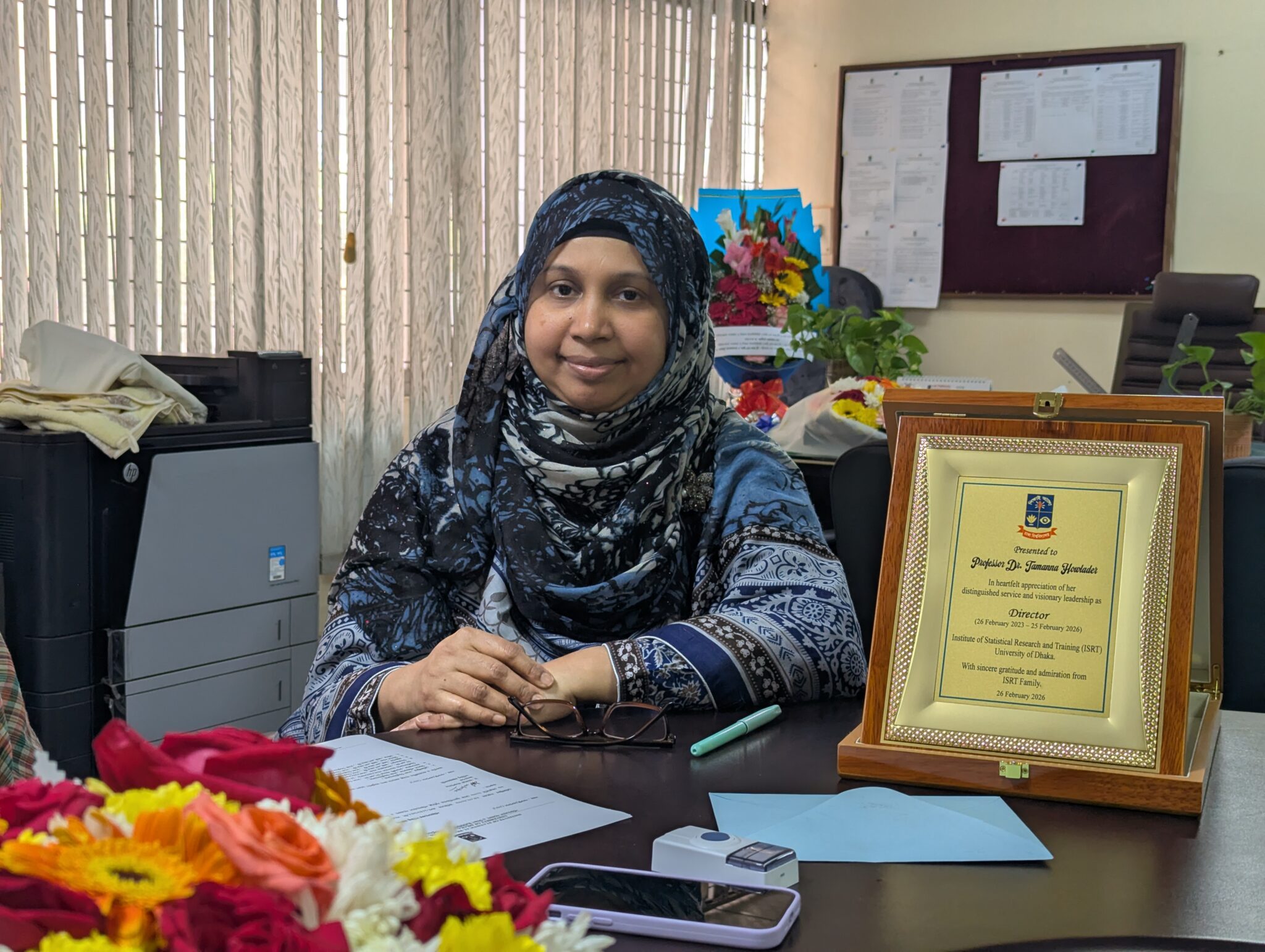 Professor Dr. Jahida Gulshan has been appointed as the new Director of the Institute of Statistical Research and Training (ISRT) on 26 February 2026. She assumed the responsibility from the former Director, Professor Dr. Tamanna Howlader, in the presence of ISRT faculty members. The ISRT family warmly congratulates Professor Dr. Jahida Gulshan on her new journey and expresses sincere appreciation to Professor Dr. Tamanna Howlader for her dedicated leadership and valuable contributions during her tenure as Director.