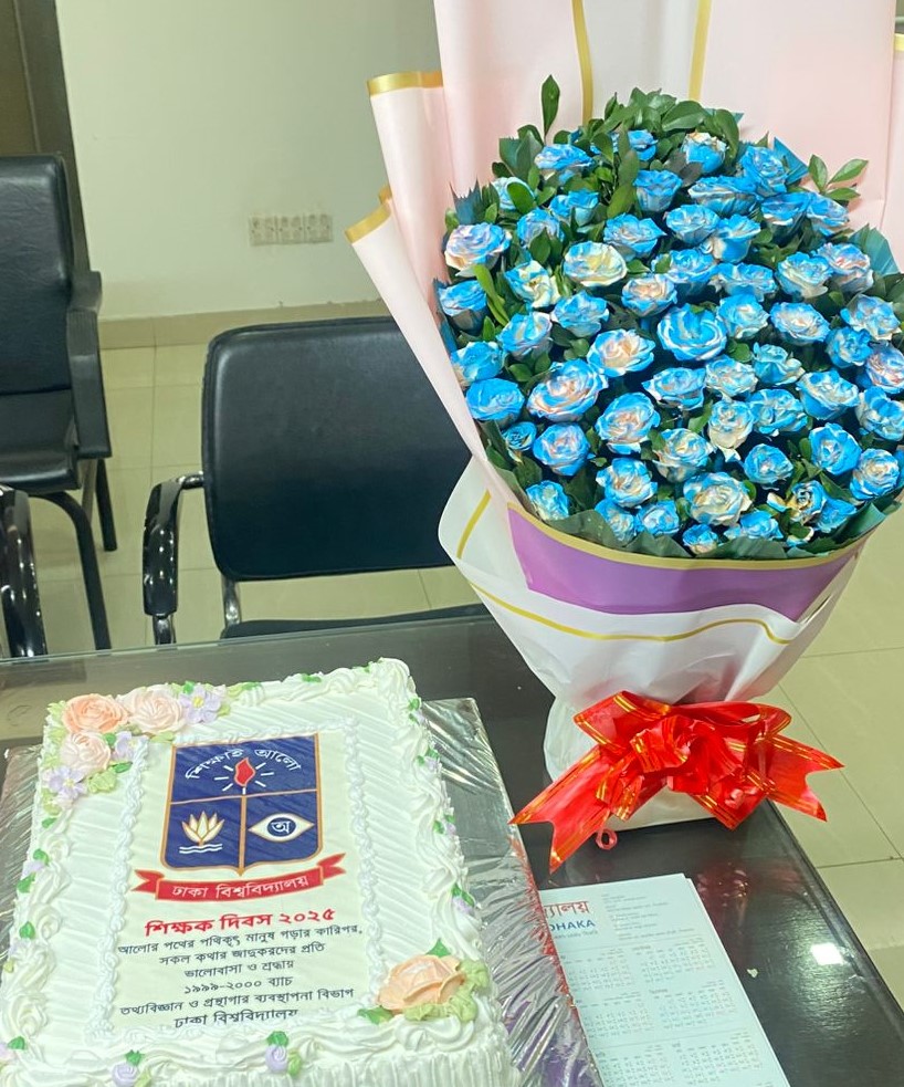 পূর্ববর্তী বছরের ধারাবাহিকতায় বিভাগের ১৯৯৯-২০০০ ব্যাচের শিক্ষার্থীবৃন্দের আয়োজনে শিক্ষক দিবস ২০২৫ উদযাপন করা হয়েছে। এ উপলক্ষে আজ ১৩ অক্টোবর ২০২৫ দুপুর ১২:০০টায় সংশ্লিষ্ট ব্যাচের শিক্ষার্থীদের পক্ষ থেকে বিভাগের শিক্ষকবৃন্দকে ফুলের তোড়া দিয়ে বরণ করা হয় এবং একটি কেক কাটা হয়।