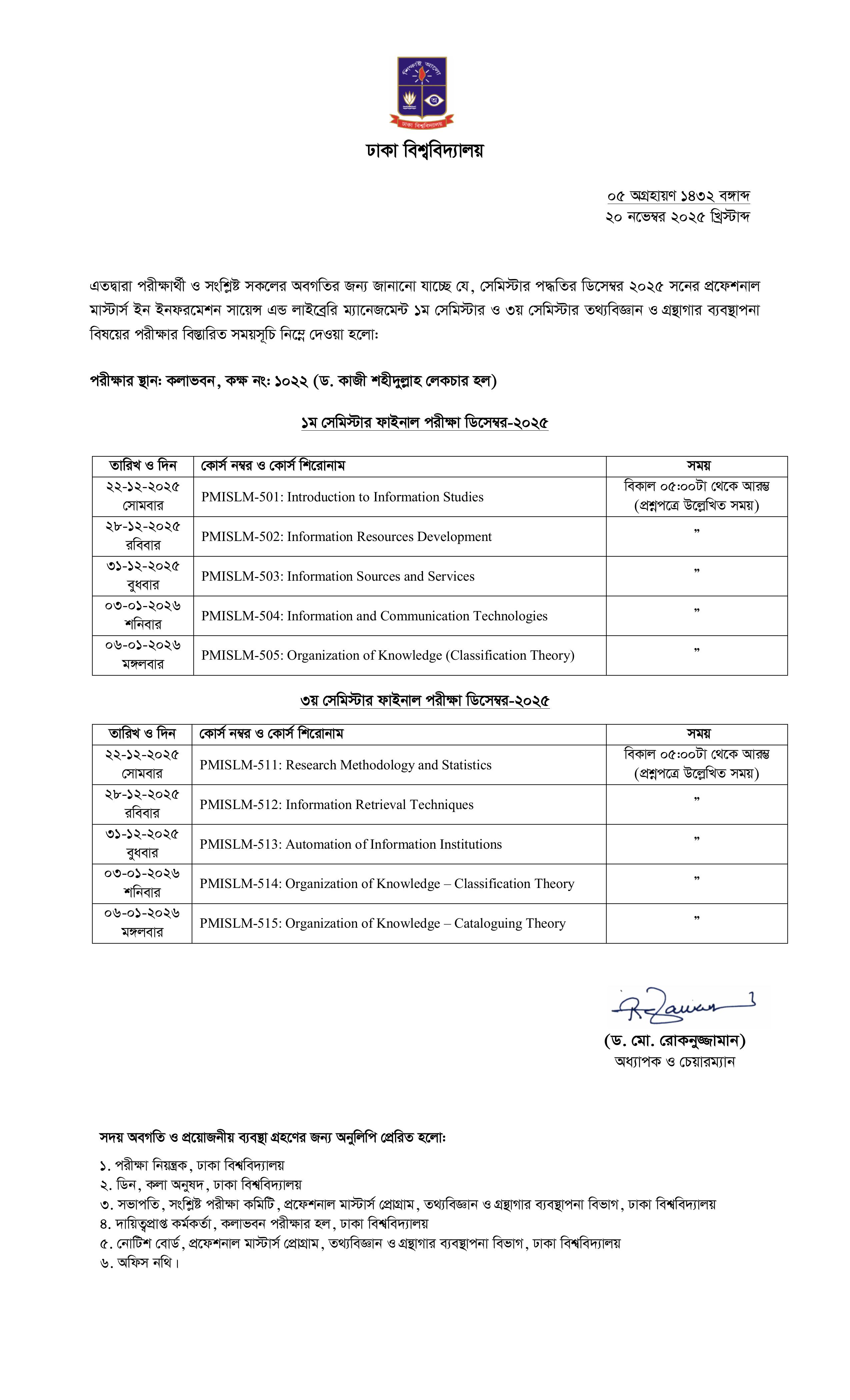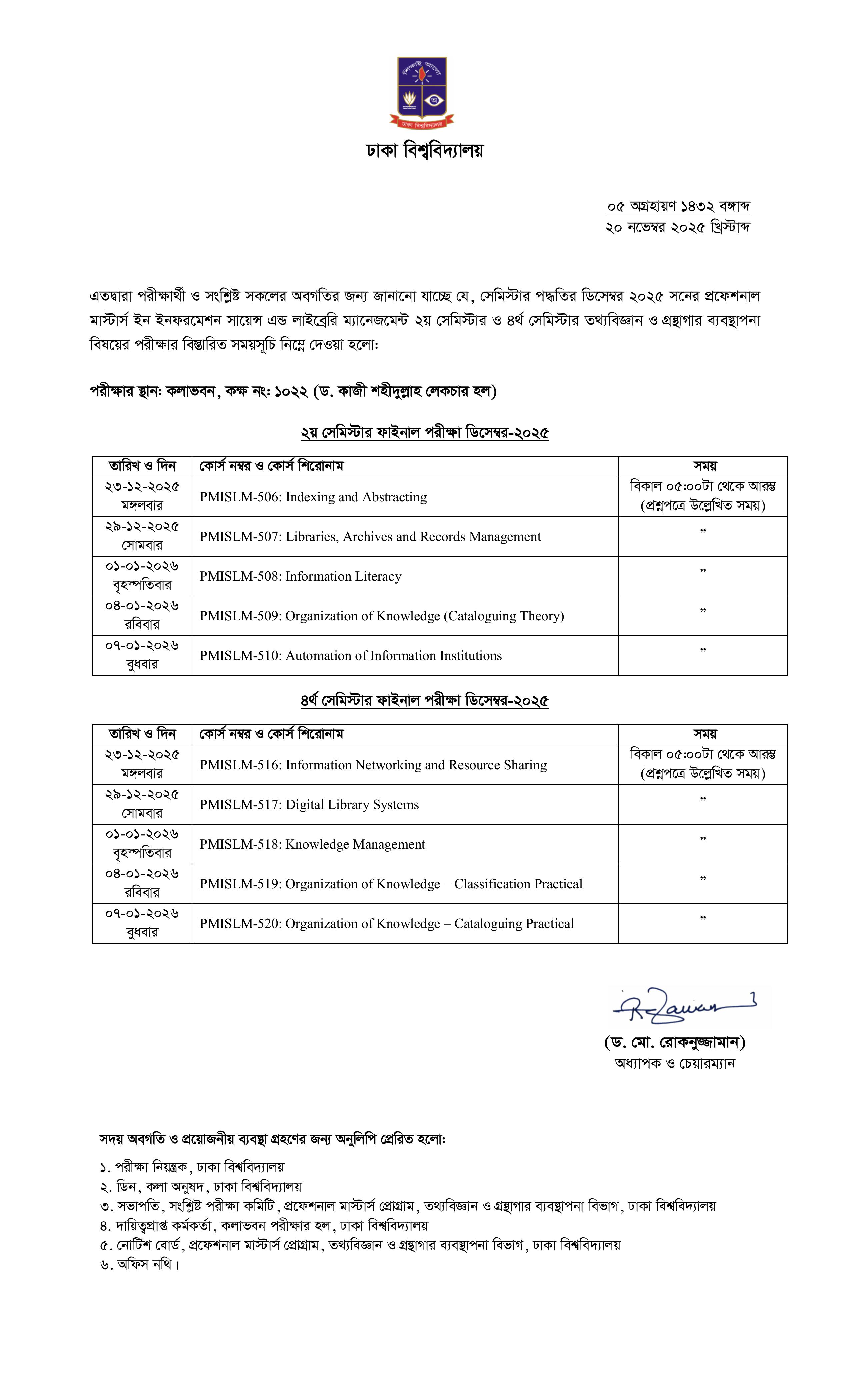 প্রফেশনাল মাস্টার্স সেমিস্টার ফাইনাল পরীক্ষা ডিসেম্বর ২০২৫-এর বিস্তারিত সময়সূচি