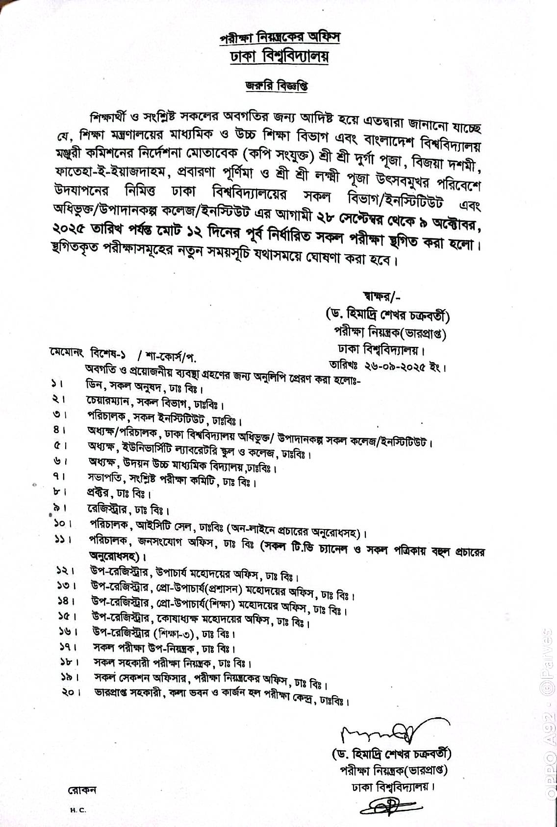 জরুরি বিজ্ঞপ্তি ( পরীক্ষা নিয়ন্ত্রকের অফিস)