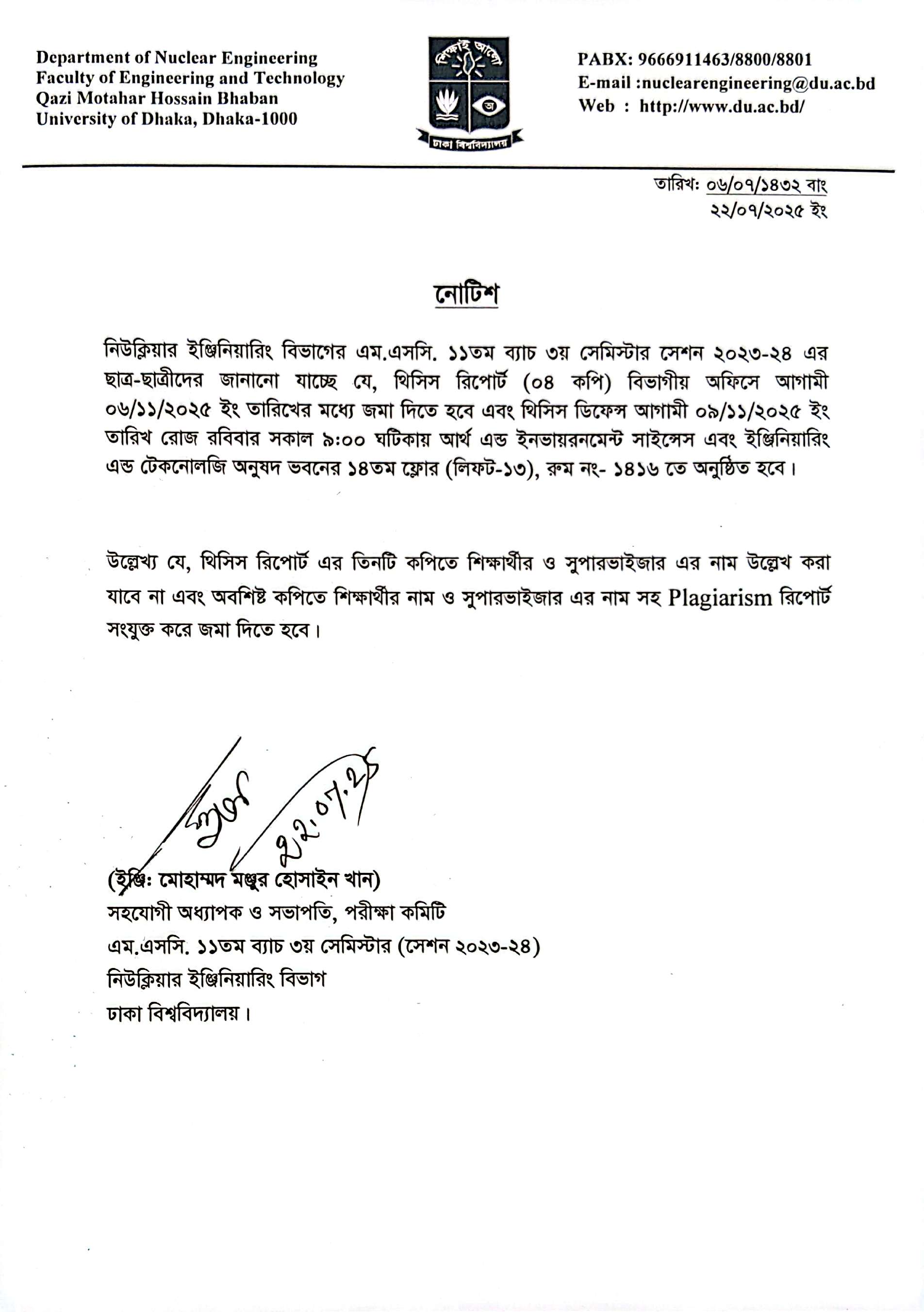 এম.এসসি. ১১তম ব্যাচ থিসিস জমা এবং থিসিস ডিফেন্স সংক্রান্ত