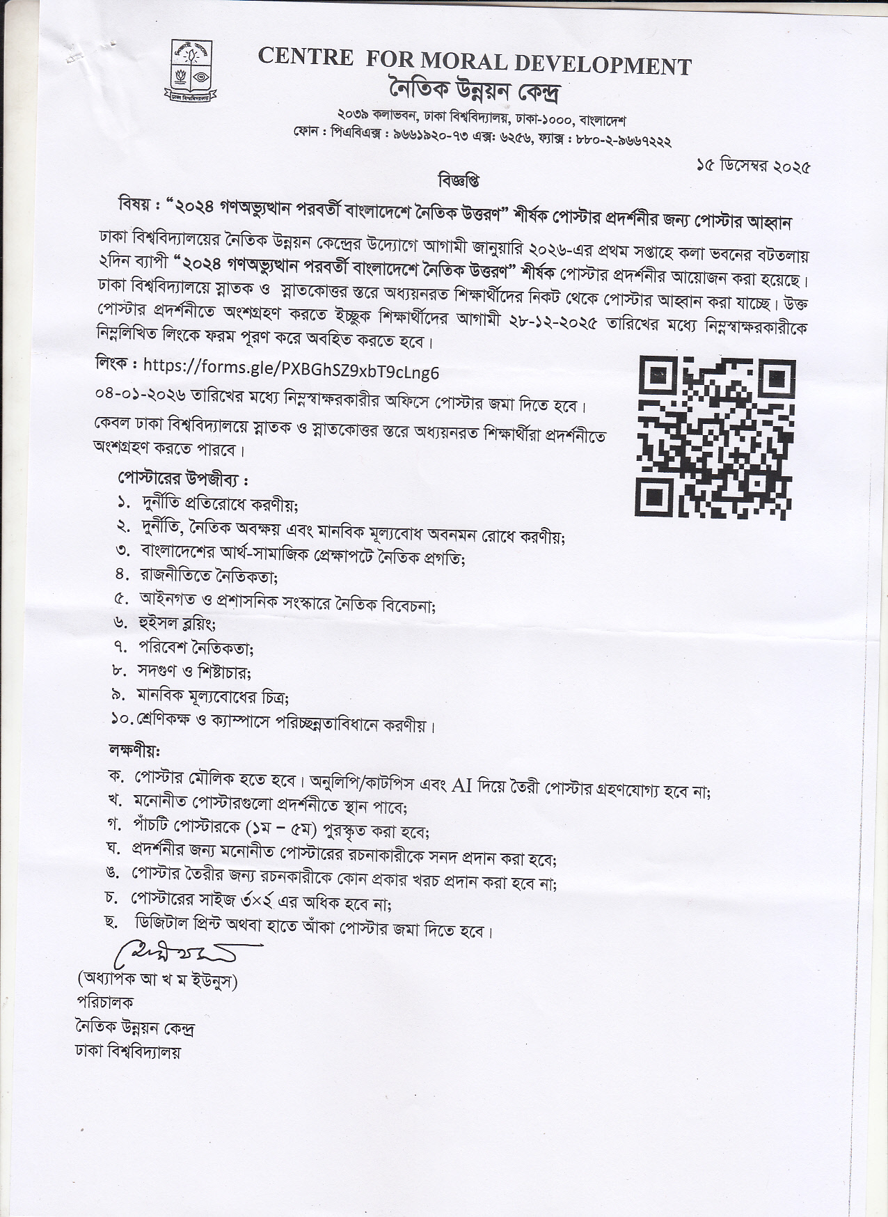 ২০২৪ গণঅভ্যুত্থান পরবর্তী বাংলাদেশে নৈতিক উত্তরণ শীর্ষক পোস্টার আহ্বান