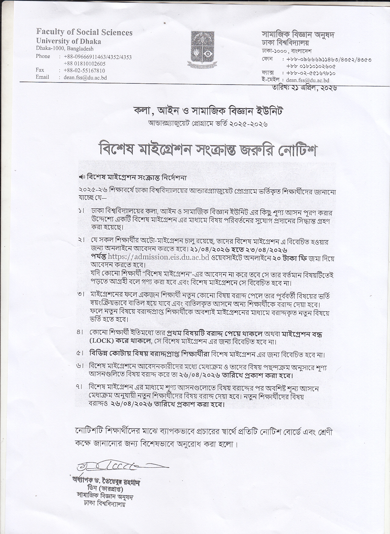 বিজ্ঞপ্তি: গ্রাজুয়েট প্রোডাকশন কর্মশালা (বিএসএস ৮ম ব্যাচ ৮ম সেমিস্টার)