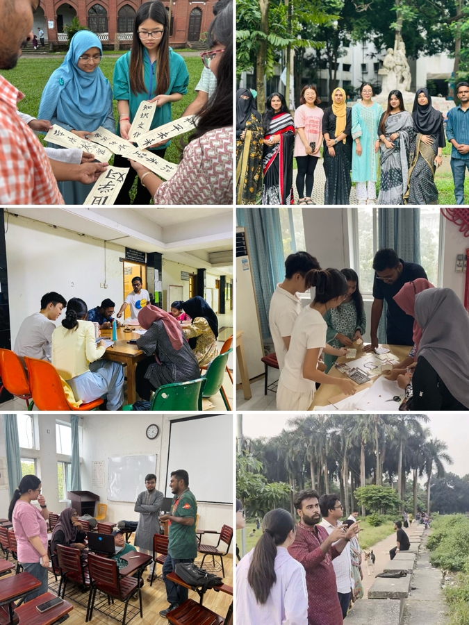 During the closing presentation, members of five groups presented their meticulously created thematic hand-copied newspapers and short videos, focusing on the University of Dhaka and its surrounding historical and cultural landmarks. The presentation themes were the Central Shaheed Minar, the Mausoleum of the National Poet Kazi Nazrul Islam, the Independence Monument, Curzon Hall, and the Dhaka Gate. Through handwritten poster, videos, and explanations, each group vividly narrated the historical memories and cultural significance behind these landmarks, demonstrating the mutual understanding and respect for each other's cultures among the Chinese and Bangladeshi youth.
