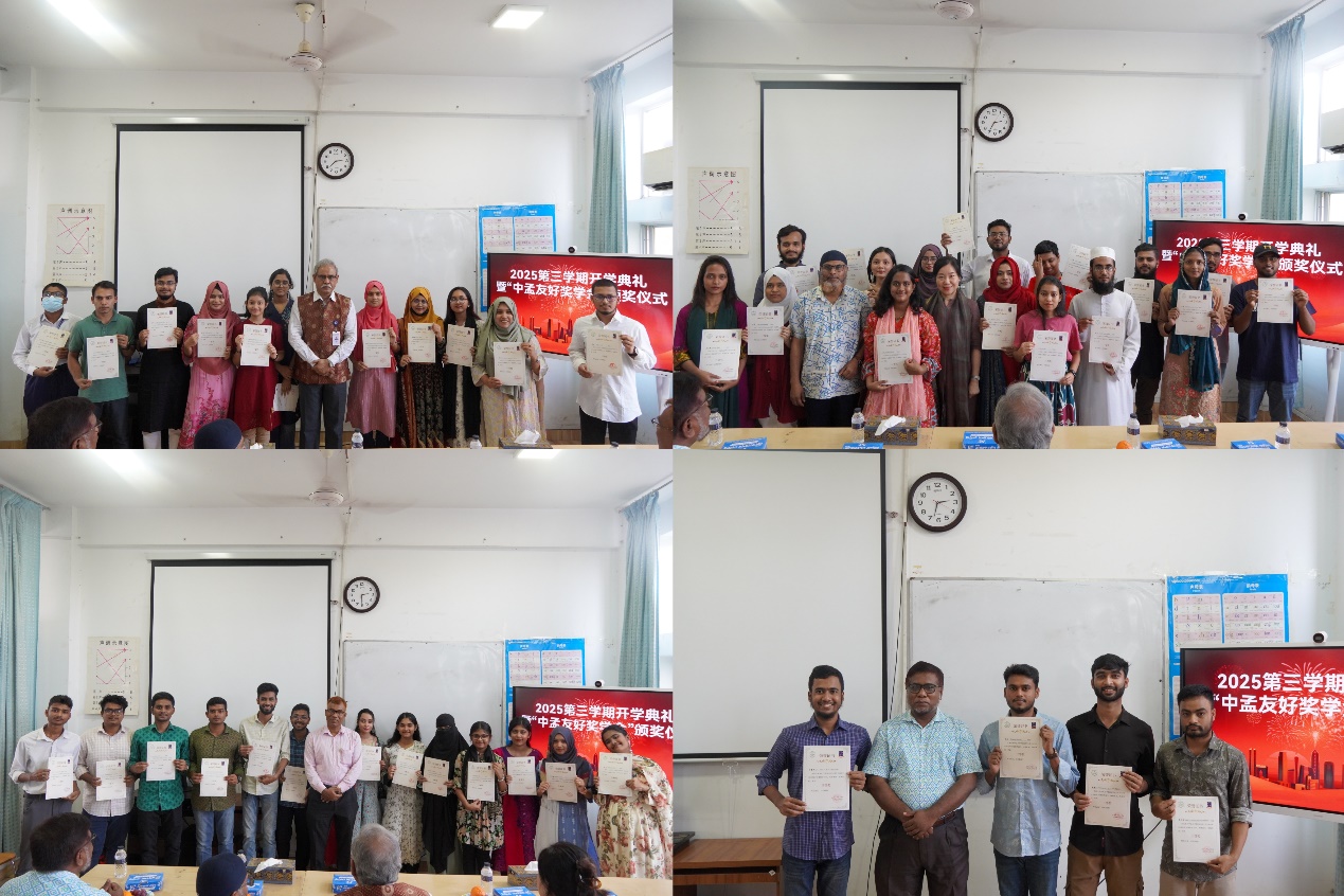 On October 26, 2025, the Confucius Institute at Dhaka University held its third-semester opening ceremony and China-Bangladesh Friendship scholarship awards. Over 200 attendees gathered for the event. A total of 69 students received the scholarships. Among them, 17 students received first prizes, 22 students received second prizes, 21 students received third prizes, and 9 students received full attendance awards. The scholarship is provided by Chinese entrepreneurs in Bangladesh.