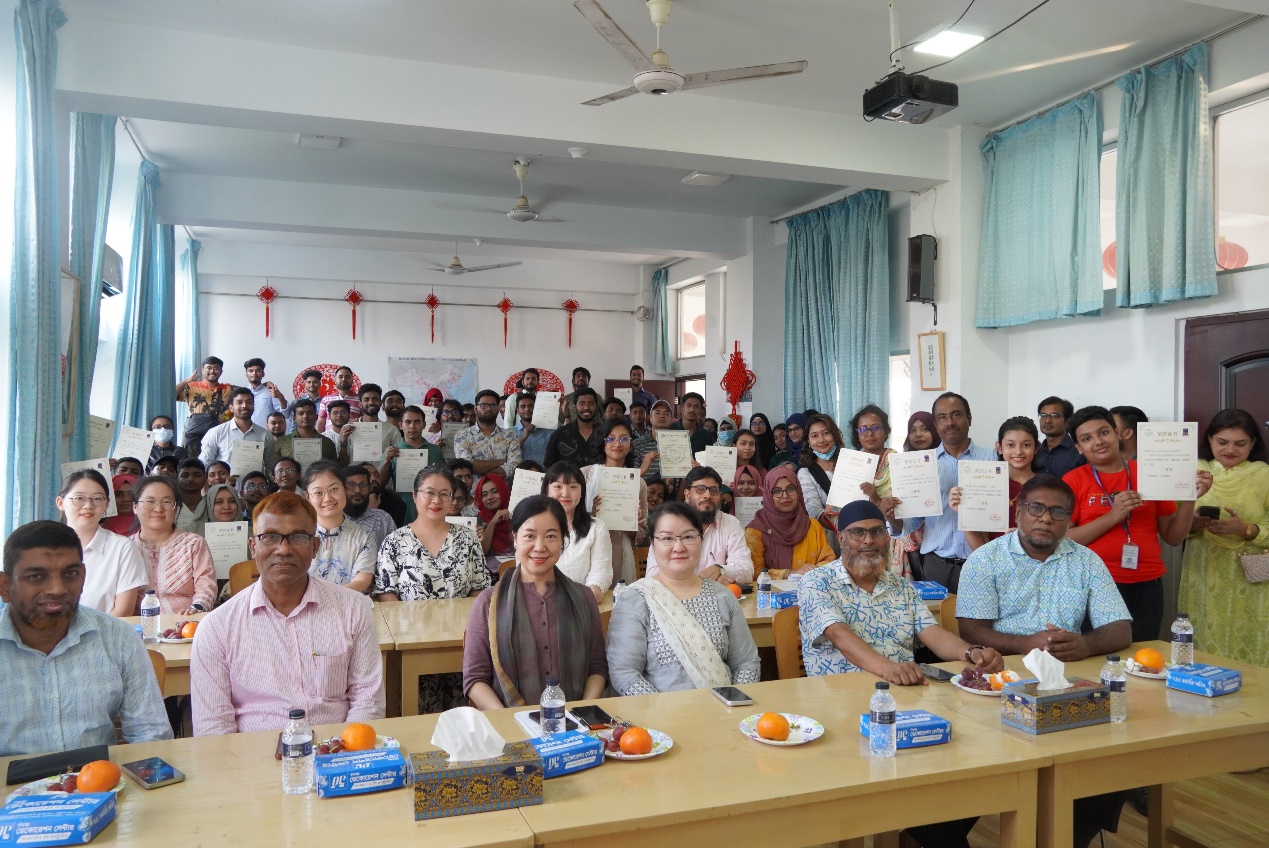 Mr. Munshi Shams Uddin Ahmed, registrar of Dhaka University, Prof. MD.Afzal Hossain, head of the Department of Chinese Language and Culture, Mr. Muhammad Arifur Rahman, principal of Udayan Higher Secondary School, Md. Jamil Uddin, principal of University Laboratory School and College, Madam Weng Yuanqin, Deputy Secretary-General of the Overseas Chinese Association in Bangladesh, Dr. Yang hui, the Chinese director of Confucius Institute, delivered the speeches. They emphasized the value of Chinese learning and highlighted Chinese as a window to the world and a catalyst for China-Bangladesh cultural ties. They encouraged students to build bridges of friendship through language, fostering mutual understanding between the two peoples.