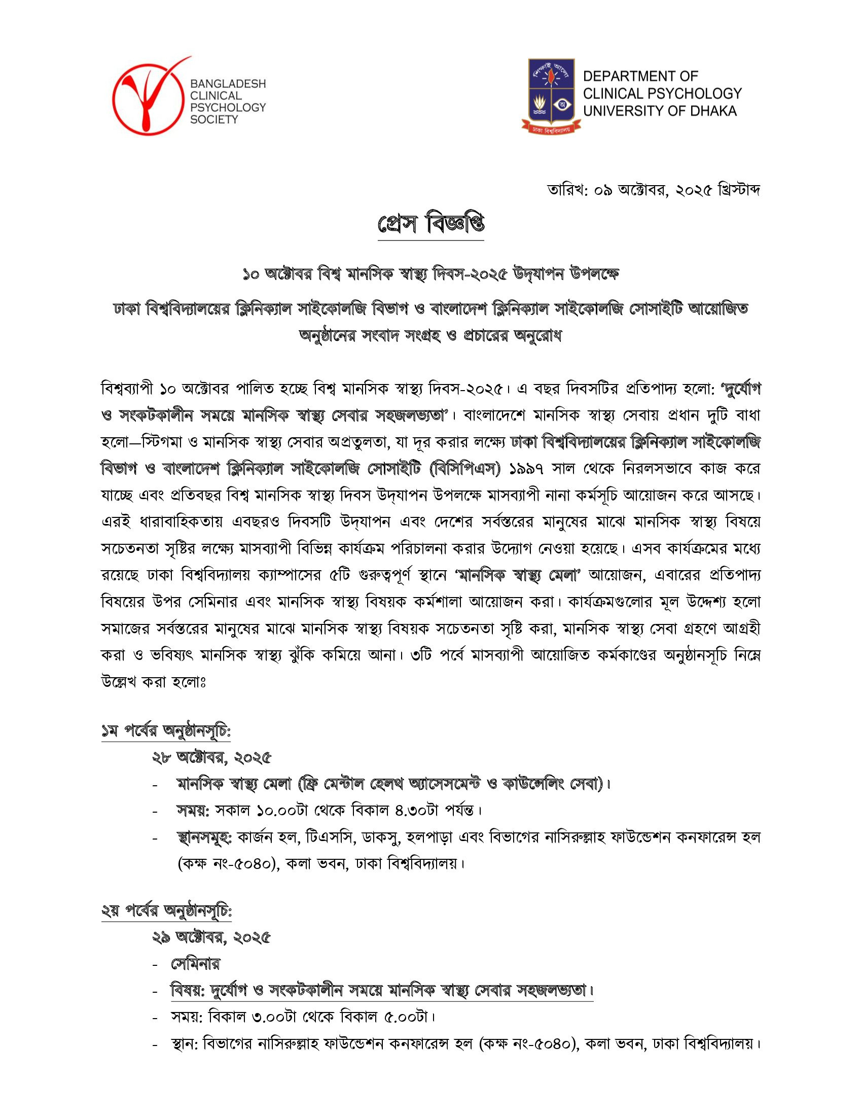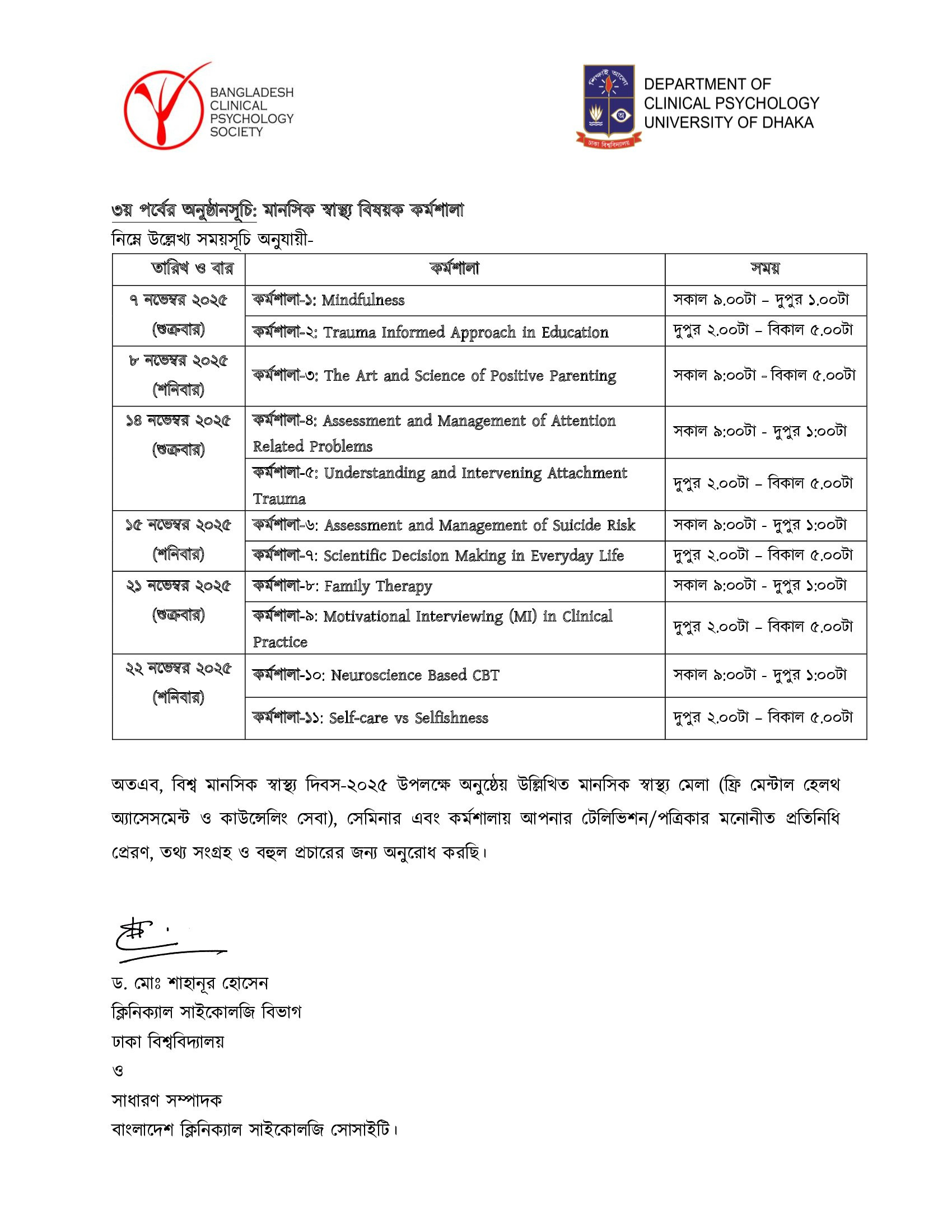 > পিএইচ. ডি (৫ম ব্যাচ), সেশন: ২০২৪-২০২৫, ক্লাস সিডিউল