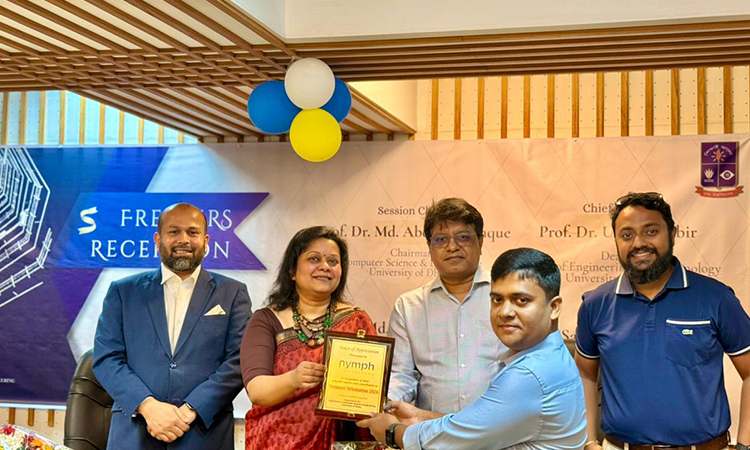 Adding a personal touch to the event, one of the freshers delivered a speech on behalf of the new batch, expressing their enthusiasm, hopes, and aspirations. The program was further enriched by a speech from special guest Mr. Kazi Safaet Mahmud Auvi, Co-Founder and CEO of Nymph Solutions Ltd., who shared his professional experiences and offered valuable advice on career development and innovation in the field of computer science.