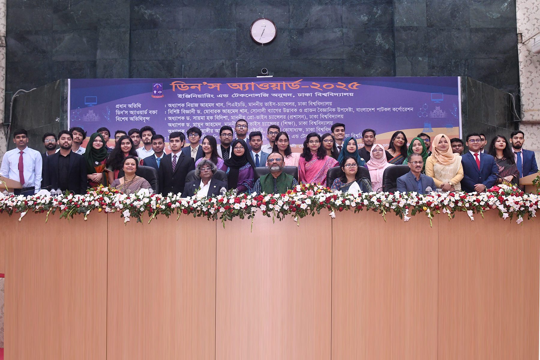 ঢাকা বিশ্ববিদ্যালয় ইঞ্জিনিয়ারিং এন্ড টেকনোলজি অনুষদের শিক্ষার্থীদের তিন বছরের (২০২১, ২০২২ ও ২০২৩) এবং শিক্ষকদের পাঁচ বছরের (২০২১, ২০২২, ২০২৩, ২০২৪ ও ২০২৫) ডিনস অ্যাওয়ার্ড প্রদান করা হয়েছে। আজ ৬ নভেম্বর ২০২৫ বৃহস্পতিবার নবাব নওয়াব আলী চৌধুরী সিনেট ভবনে আয়োজিত অনুষ্ঠানে শিক্ষার্থী ও শিক্ষকদের হাতে এ অ্যাওয়ার্ড তুলে দেওয়া হয়। অনুষদের ৫টি বিভাগের মোট ৪৪ জন শিক্ষার্থী ডিনস অ্যাওয়ার্ড পান। এছাড়া দেশে/বিদেশে প্রকাশিত গবেষণা গ্রন্থ এবং স্বীকৃত জার্নালে প্রকাশিত মৌলিক প্রবন্ধের জন্য ৩০ জন শিক্ষককে ডিনস অ্যাওয়ার্ড দেওয়া হয়।