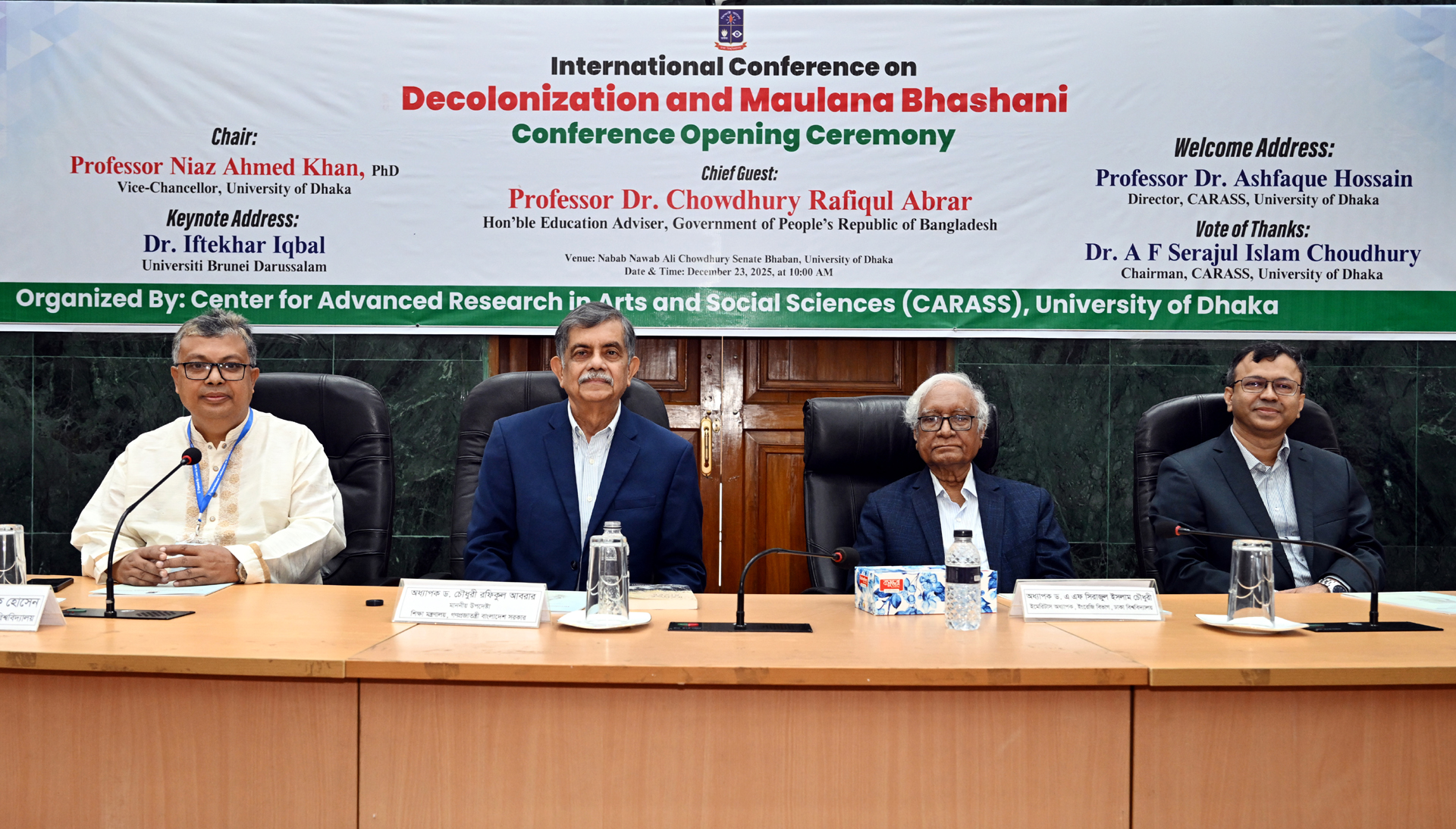 ঢাকা বিশ্ববিদ্যালয়ে আজ ২৩ ডিসেম্বর ২০২৫ মঙ্গলবার ‘ডিকলোনাইজেশন অ্যান্ড মওলানা ভাসানী’ শীর্ষক দুই দিনব্যাপী আন্তর্জাতিক সম্মেলন শুরু হয়েছে। সম্মেলনটির আয়োজন করেছে ঢাকা বিশ্ববিদ্যালয়ের সেন্টার ফর অ্যাডভান্সড রিসার্চ ইন আর্টস অ্যান্ড সোশ্যাল সায়েন্সেস (কারাস)।