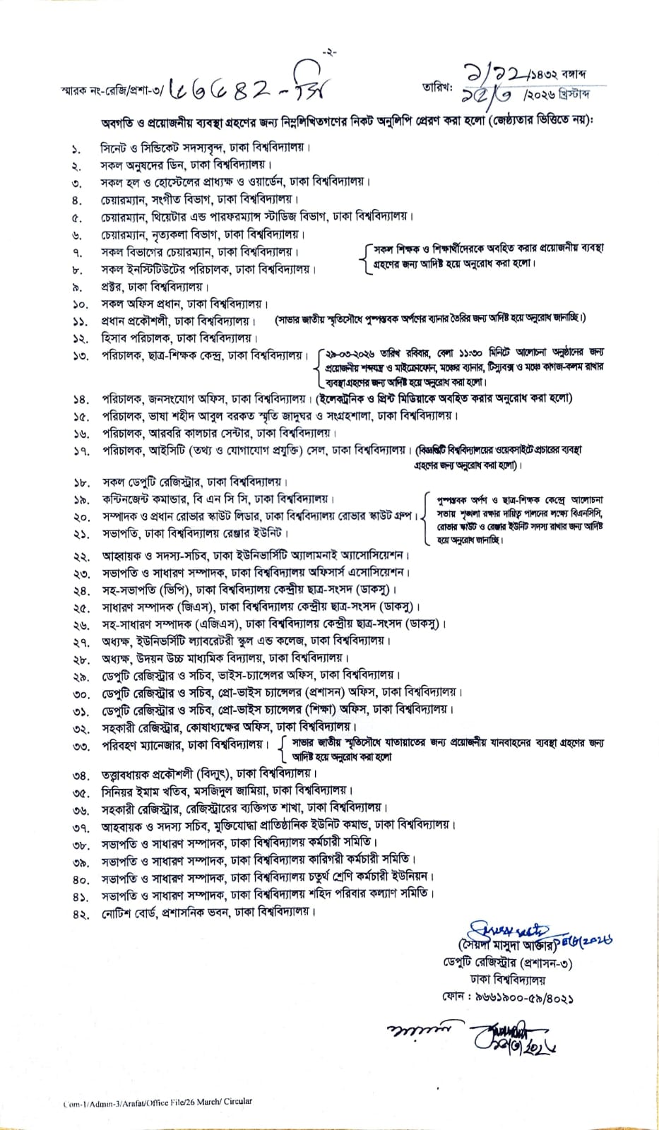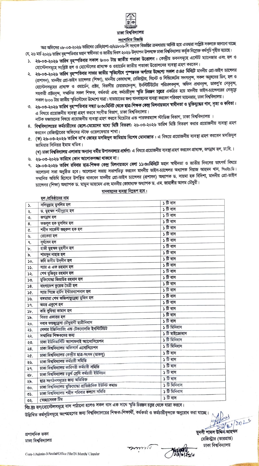 স্বাধীনতা ও জাতীয় দিবস-২০২৬ উদযাপন উপলক্ষে কর্মসূচি (সংশোধিত)