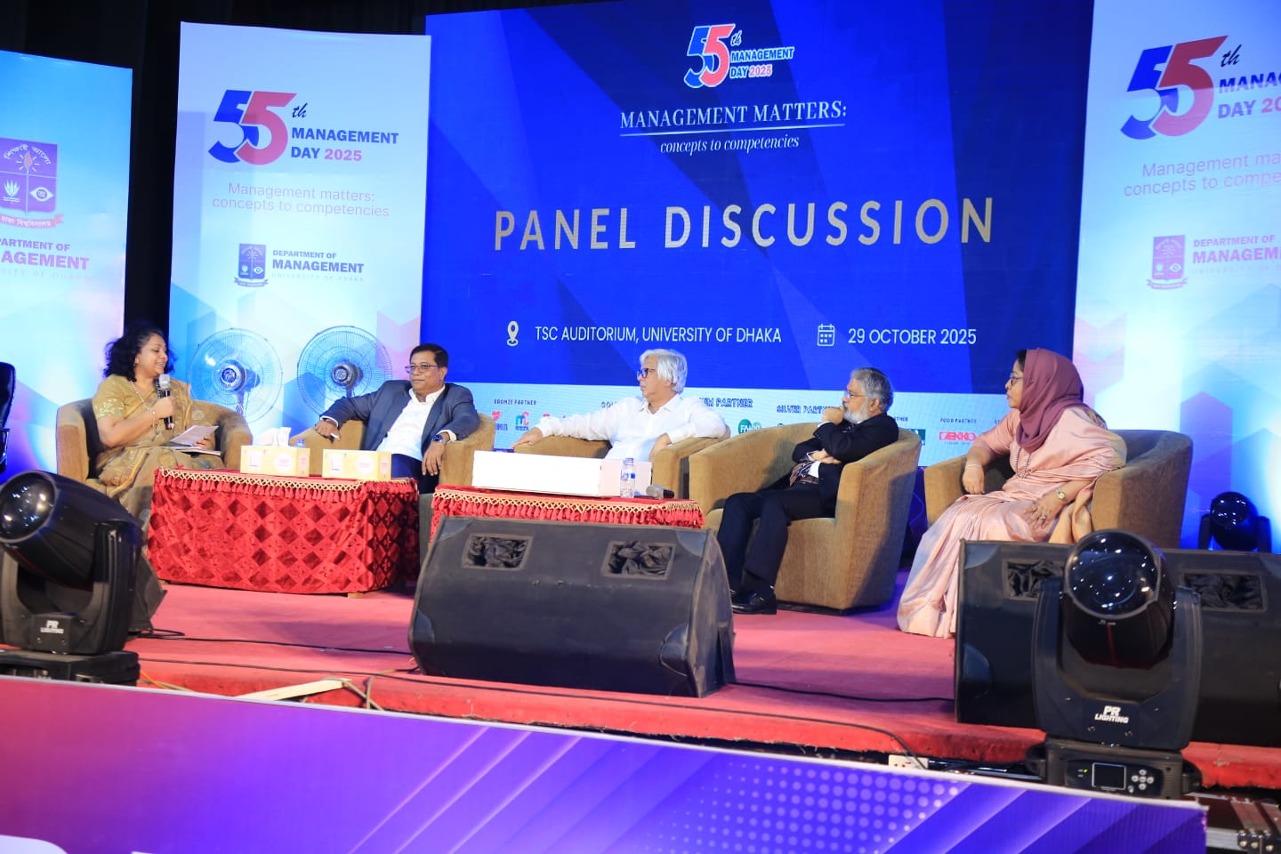 ছাত্র-শিক্ষক কেন্দ্র মিলনায়তনে বিভাগীয় চেয়ারম্যান অধ্যাপক ড. মোহাম্মদ তৌফিকুল ইসলামের সভাপতিত্বে  আলোচনা সভায় বিভিন্ন পর্বে ঢাকা বিশ্ববিদ্যালয়ের প্রো-ভাইস চ্যান্সেলর (শিক্ষা) অধ্যাপক ড. মামুন আহমেদ এবং কোষাধ্যক্ষ অধ্যাপক ড. এম. জাহাঙ্গীর আলম চৌধুরী প্রধান অতিথি হিসেবে উপস্থিত ছিলেন। বিজনেস স্টাডিজ অনুষদের ডিন অধ্যাপক ড. মাহমুদ ওসমান ইমাম, বিভাগের সাবেক চেয়ারম্যান অধ্যাপক মো. আলী আক্কাস এবং বাংলাদেশ পোশাক প্রস্তুতকারক ও রপ্তানিকারক সমিতির (বিজিএমইএ) সাবেক সভাপতি আনোয়ার-উল-আলম আলোচনায় অংশ নেন। বিভাগের সহকারী অধ্যাপক মিসেস নুর নাহার ইয়াসমিন অনুষ্ঠান সঞ্চালন করেন।