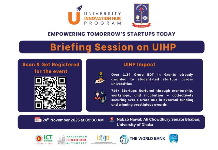 University Innovation Hub Program আগামী ২৪ নভেম্বর, ২০২৫ তারিখে অনুষ্ঠিত হবে