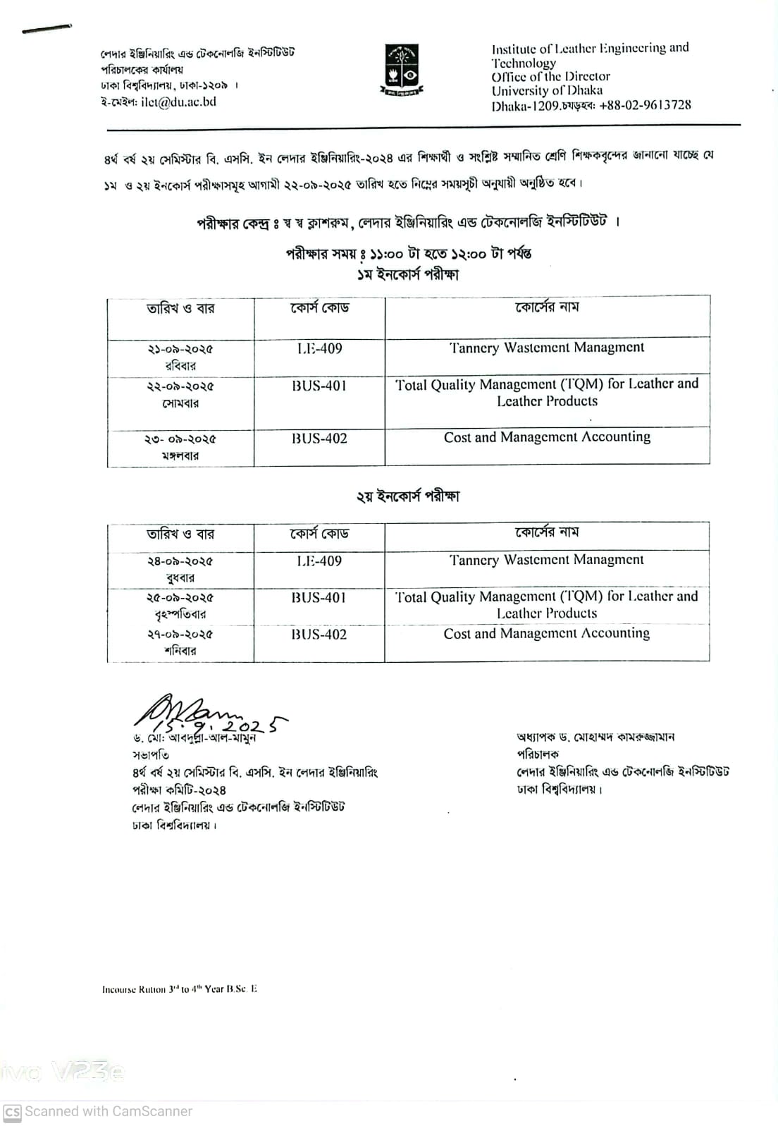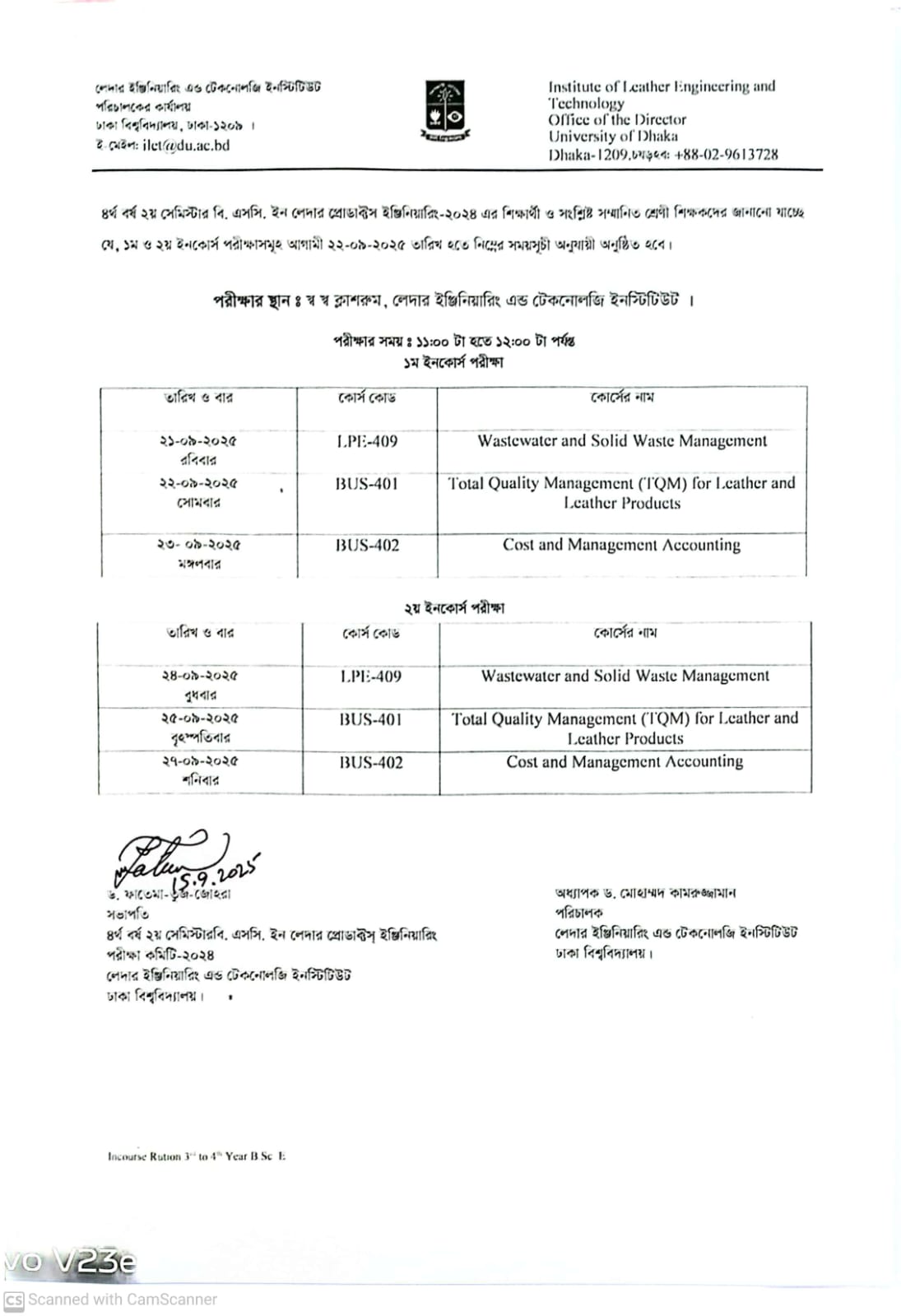 4th Year 2nd Semester B.Sc. in LE/FE/LPE-2024: incourse exam schedule