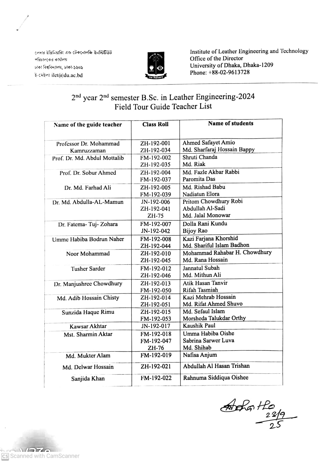 2nd Year 2nd Semester B.Sc. in LE-2024: field tour guide