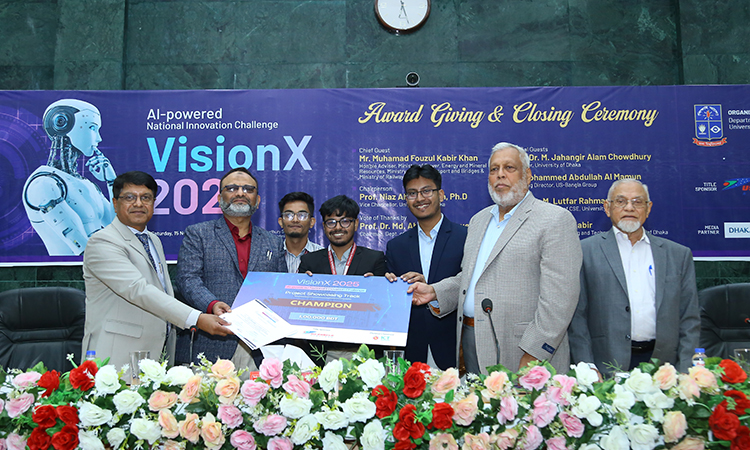 The University of Dhaka became Champion in the Project Showcasing Track at the national artificial intelligence–based competition titled “VisionX: AI-Powered National Innovation Challenge.”