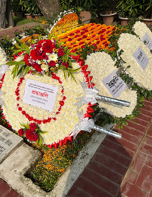 শিল্পী পটুয়া কামরুল হাসান-এর ১০৪তম জন্মবার্ষিকীতে গ্রাফিক ডিজাইন বিভাগের পক্ষ থেকে শিল্পীর সমাধীতে পুষ্পস্তবক অর্পন।