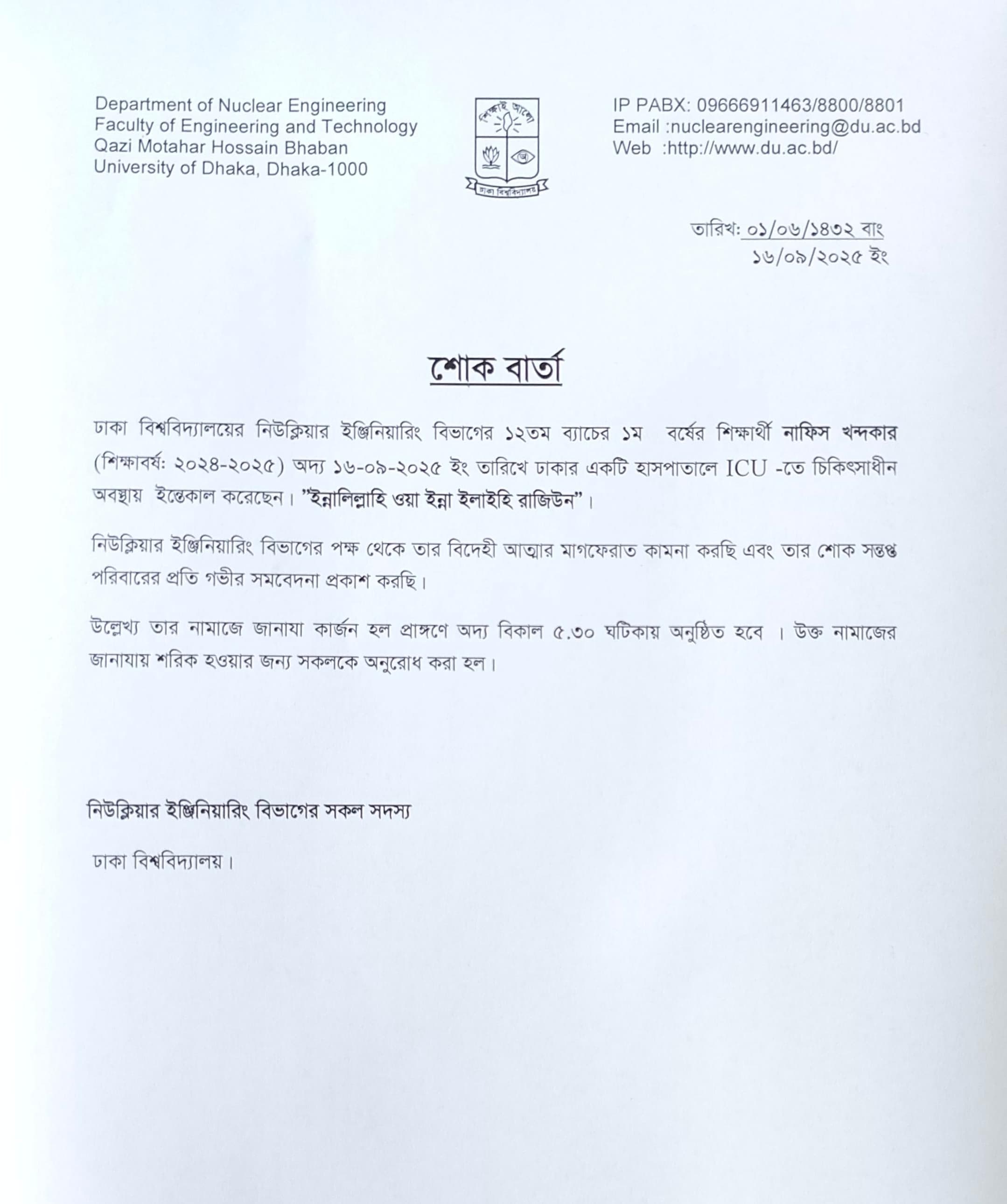 জরুরি বিজ্ঞপ্তি ( পরীক্ষা নিয়ন্ত্রকের অফিস)