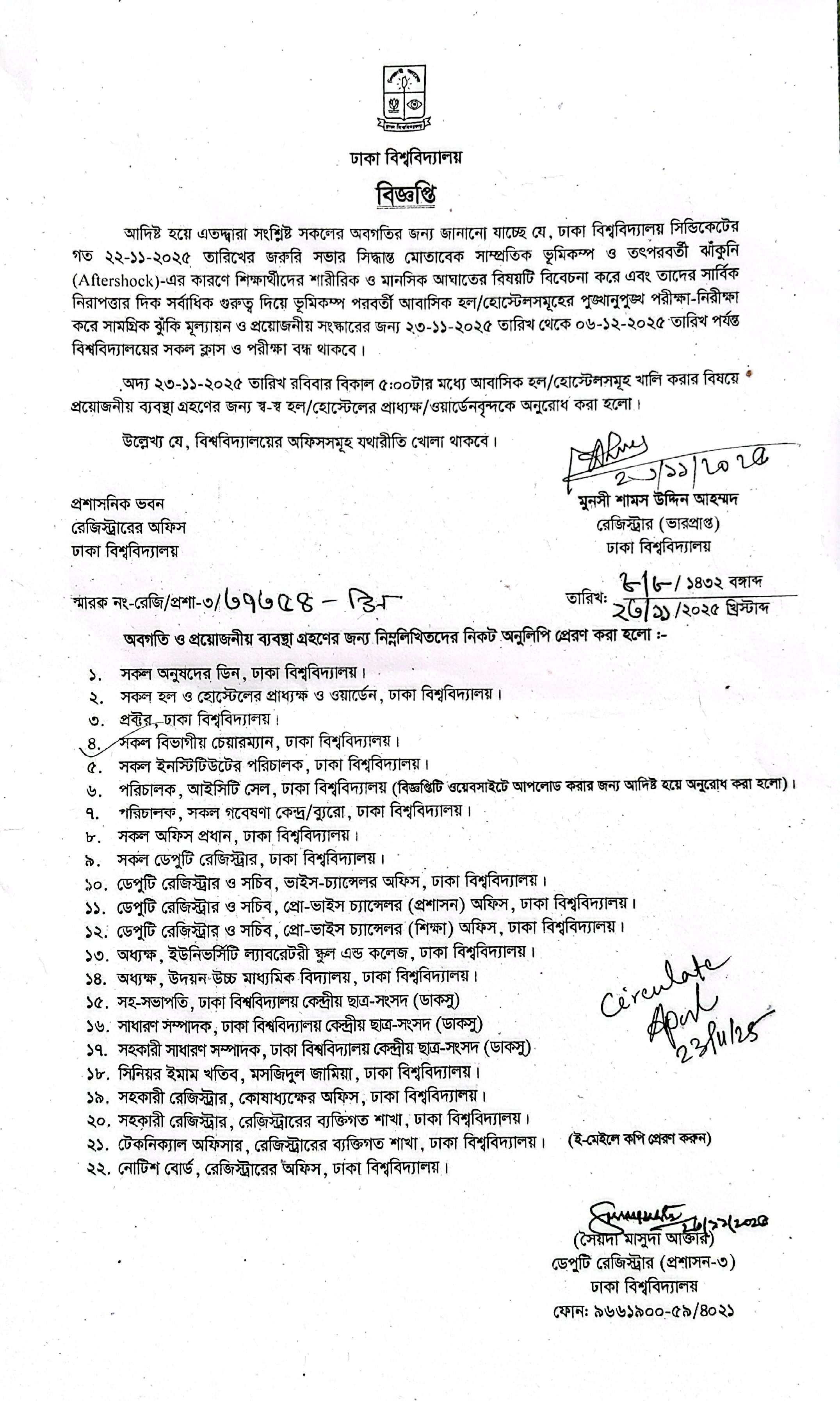 বিজ্ঞপ্তি (৮ম ব্যাচ ৪র্থ বর্ষ)