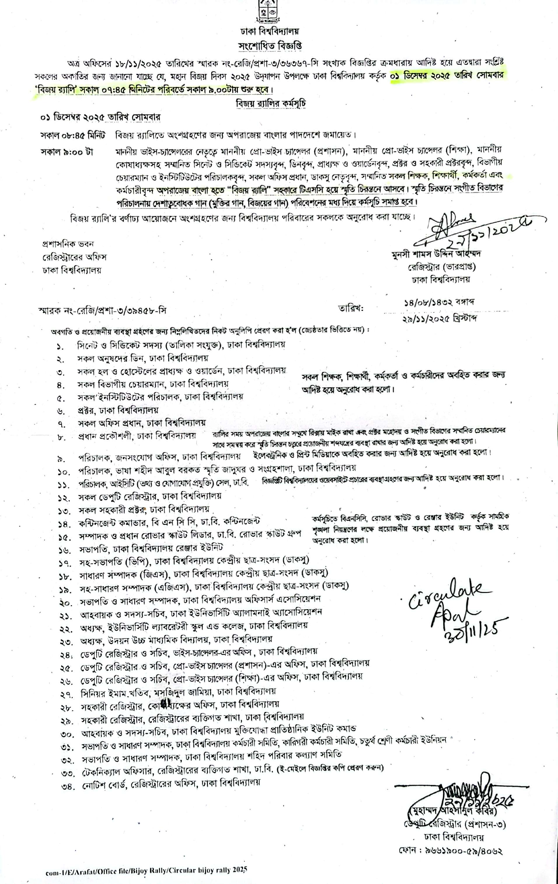 বিজয় র ্যালির কর্মসূচি