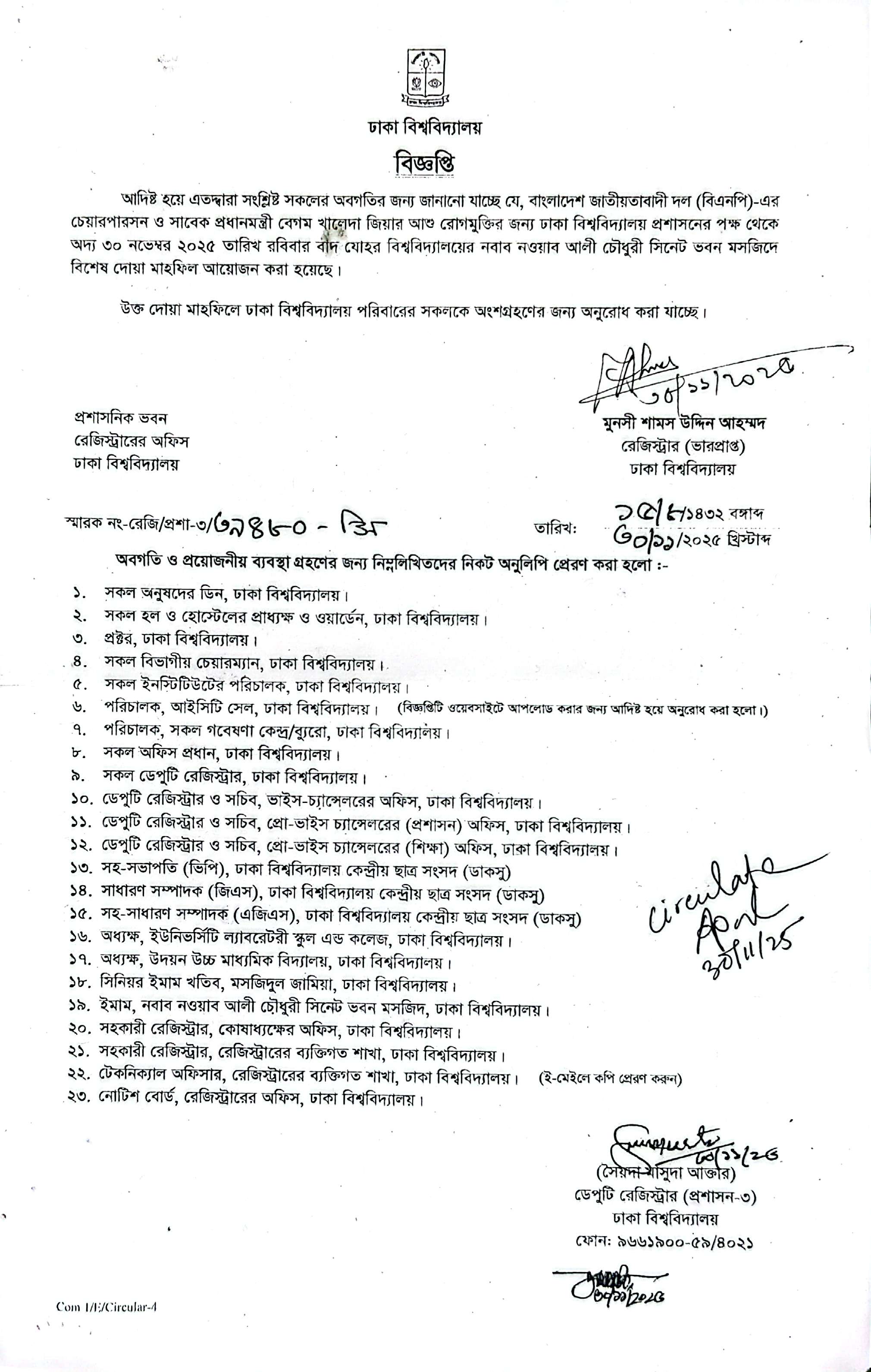 নোটিশ (অনলাইন ক্লাস সংক্রান্ত)