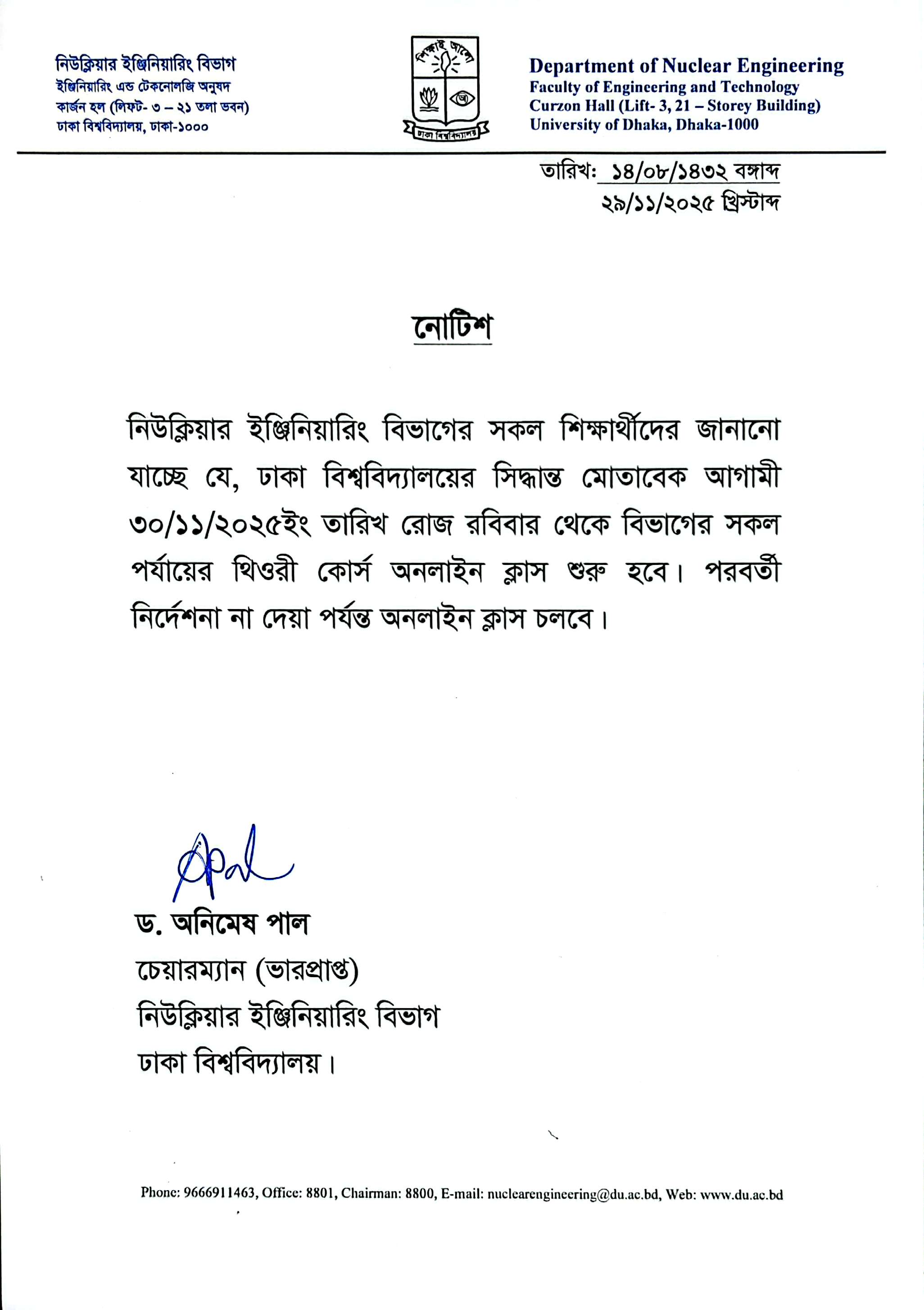 নোটিশ (অনলাইন ক্লাস সংক্রান্ত)