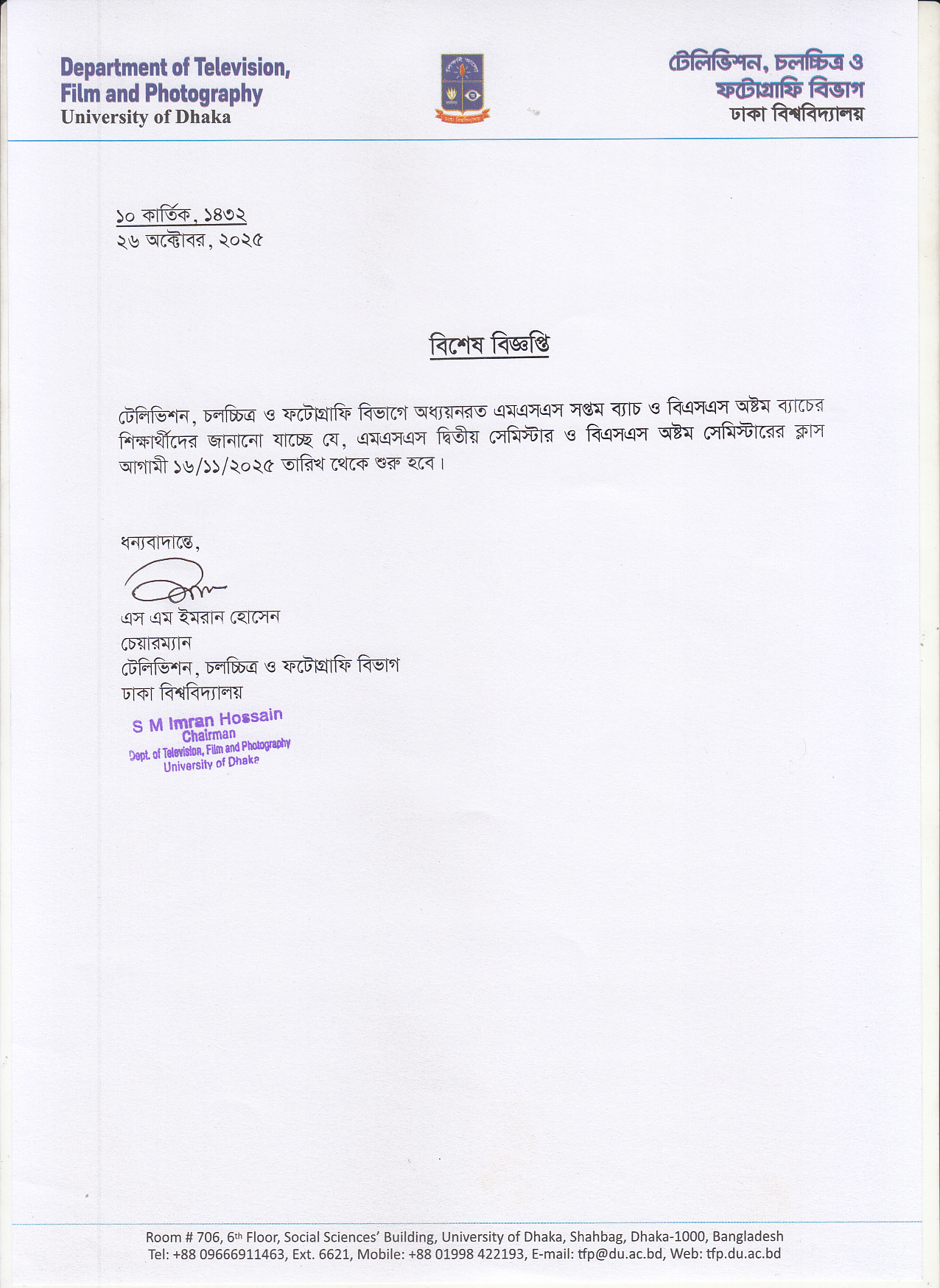 বিশেষ বিজ্ঞপ্তি: সেমিস্টার ফি সংক্রান্ত (বিএসএস ৯ম ও ১০ম ব্যাচ)