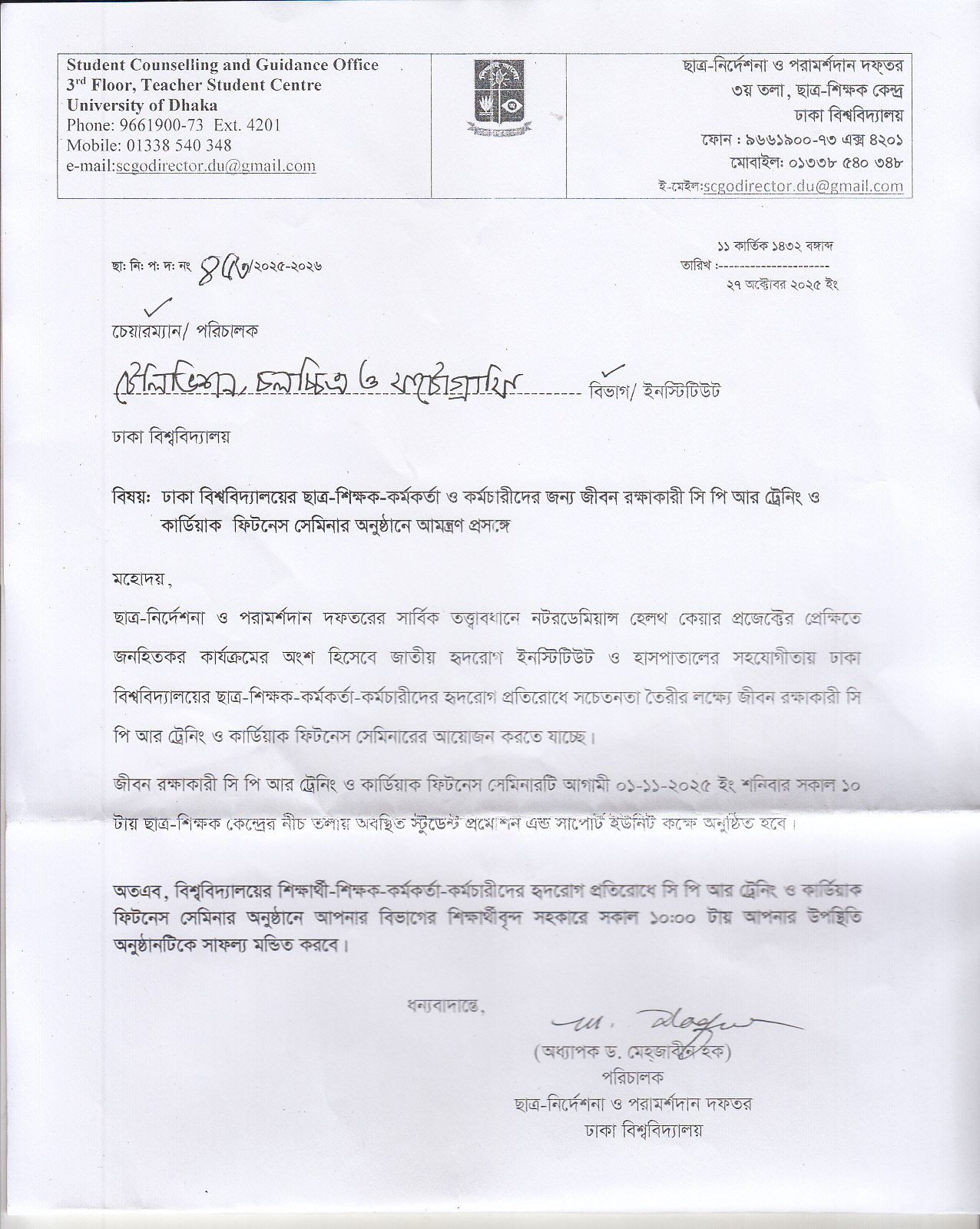 বিজ্ঞপ্তি: সিপিআর ও কার্ডিয়াক ফিটনেস সেমিনার সংক্রান্ত