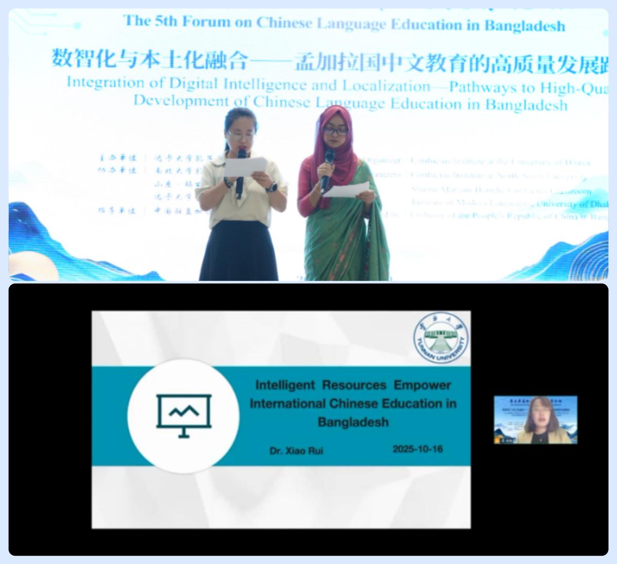 The forum's agenda included a keynote speech by Associate Prof. Dr. Xiao Rui from Yunnan University, titled “Intelligent Resources Empower International Chinese Education in Bangladesh”. Dr. Xiao provided a systematic introduction to cutting-edge digital resources and proposed a trinity empowerment path of “Technology Integration, Concept Renewal, and Industry Upgrade” tailored for the Bangladeshi context.
