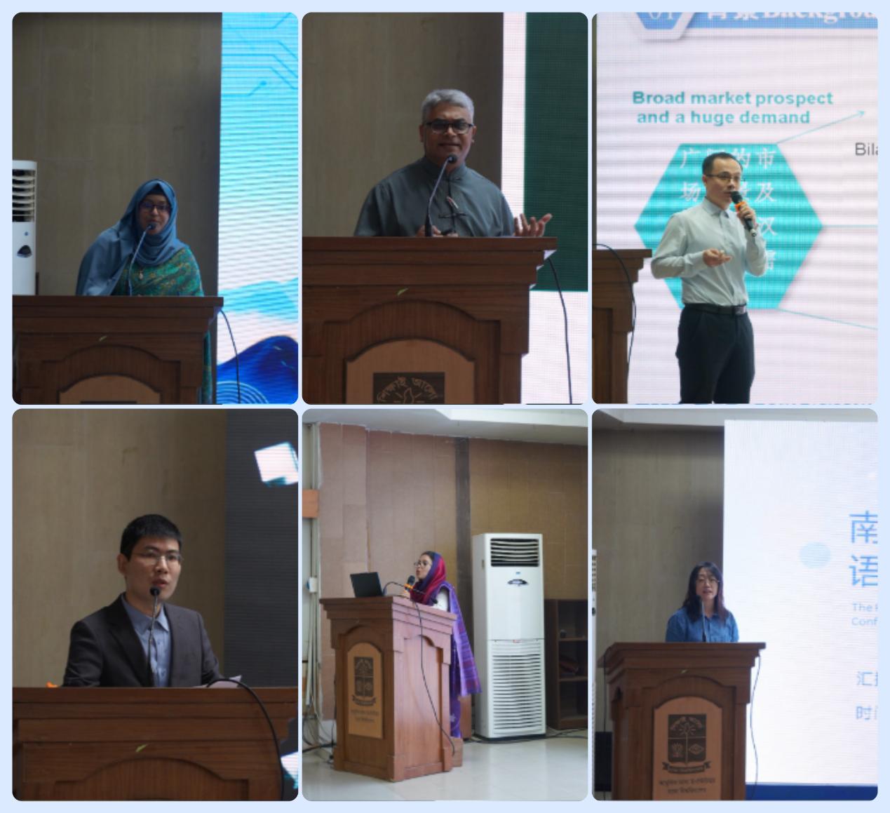 The subsequent panel discussions were rich in content and engaged lively debates. Session 1, moderated by Assistant Professor Ms. Jannatun Naher, explored topics ranging from the strategic role of Sino-Bangladeshi educational cooperation in achieving demographic dividend to the challenges of online and blended teaching modes, application strategies for AI in teaching listening and speaking skills, localization practices, and explorations of “Chinese + Business” models.