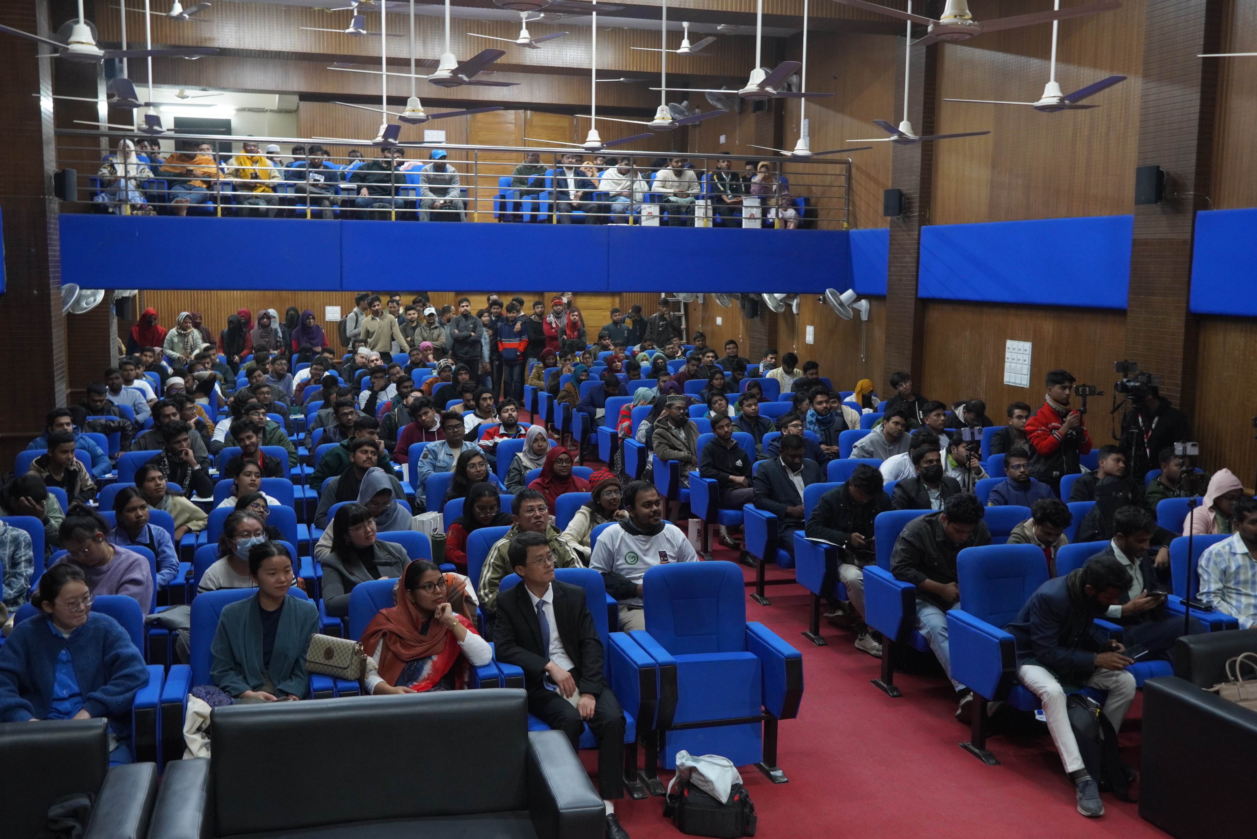 To enhance Bangladeshi students' understanding of China's higher education system and broaden study channels to China, a seminar on Higher Education in China and Chinese Government Scholarship was successfully held at the University of Dhaka in the afternoon of December 29, 2025. The event was jointly organized by the Embassy of the People's Republic of China in Bangladesh, Confucius Institute at University of Dhaka, and the Dhaka University Central Students Union (DUCSU). Mr. Li Shaopeng, Cultural Counselor of the Embassy of the People's Republic of China in Bangladesh, Dr. Yang Hui, Chinese Director of Confucius Institute at University of Dhaka, Mr. Sadik Kayem, DUCSU Vice President, along with nearly 300 students from the University of Dhaka attended the event.