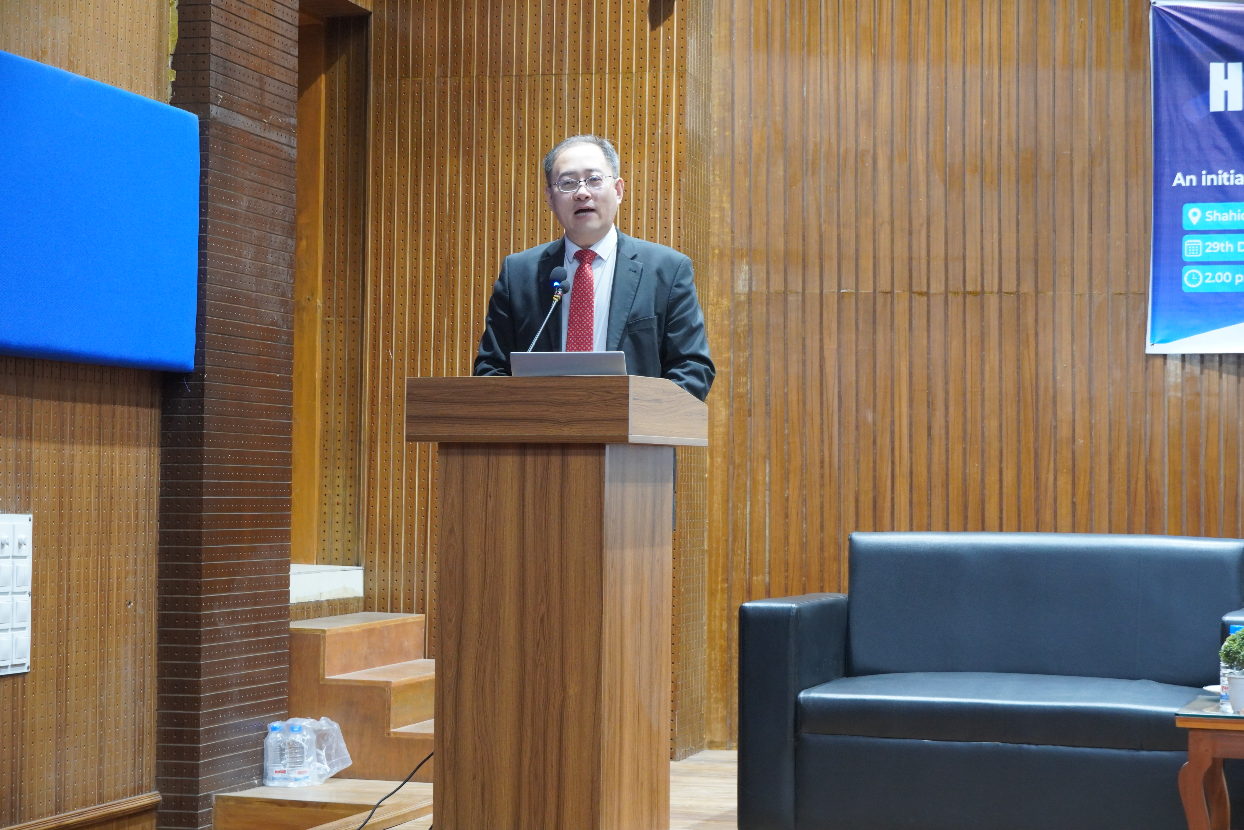 DUCSU International Affairs Secretary Jasimuddin Khan delivered the opening remarks, emphasizing the important role of educational exchanges in deepening the friendly relations between China and Bangladesh. Mr. Li Shaopeng, Cultural Counselor of the Embassy of the People's Republic of China in Bangladesh, delivered a speech encouraging students to actively apply for the Chinese Government Scholarship. He pointed out that China is consistently committed to providing international students with high-quality educational resources and an open, inclusive learning environment. Studying in China not only helps broaden international horizons but also creates more opportunities for personal career development. He welcomed more outstanding Bangladeshi youth to pursue advanced studies in China, becoming bridges for cultural exchange and friendly cooperation between China and Bangladesh.