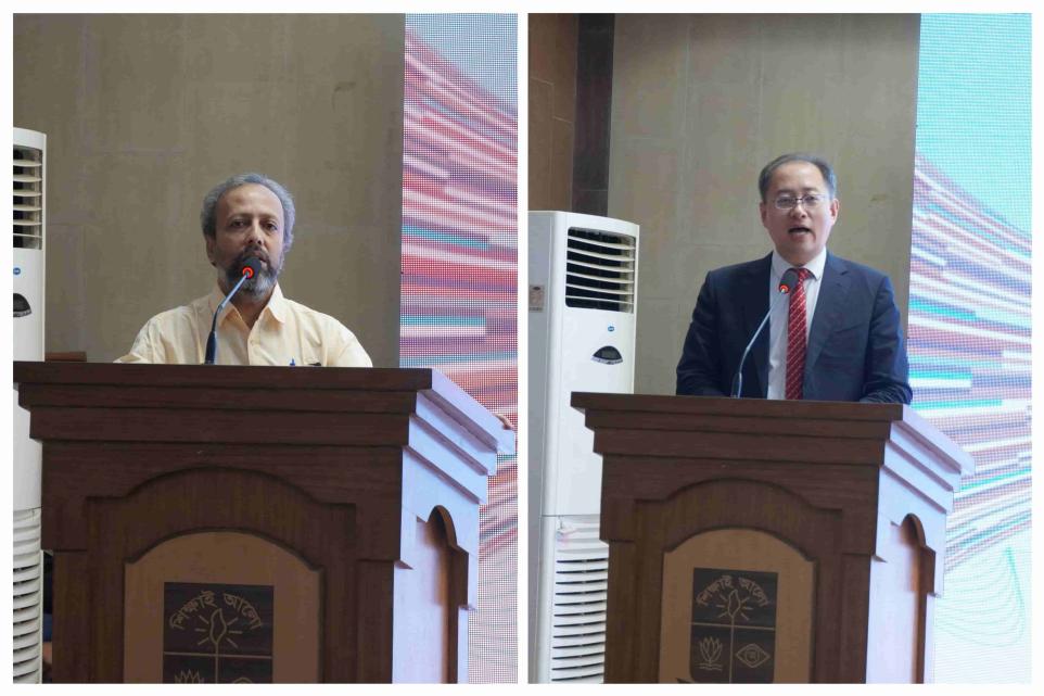 活动伊始,达卡大学现代语言学院院长卡迈勒教授、中国驻孟使馆文化处参赞李少鹏先生先后致辞。他们在讲话中高度肯定了国际中文日在促进语言文化交流中的重要作用,指出影视剧作为当代文化传播的重要载体,兼具艺术性与传播力,通过配音形式学习中文,不仅能够提升学习者的中文表达能力,也有助于加深对中国社会与文化的理解。他们鼓励参赛选手以声音为媒,展现中文魅力,讲好中国故事,进一步推动中孟人文交流。