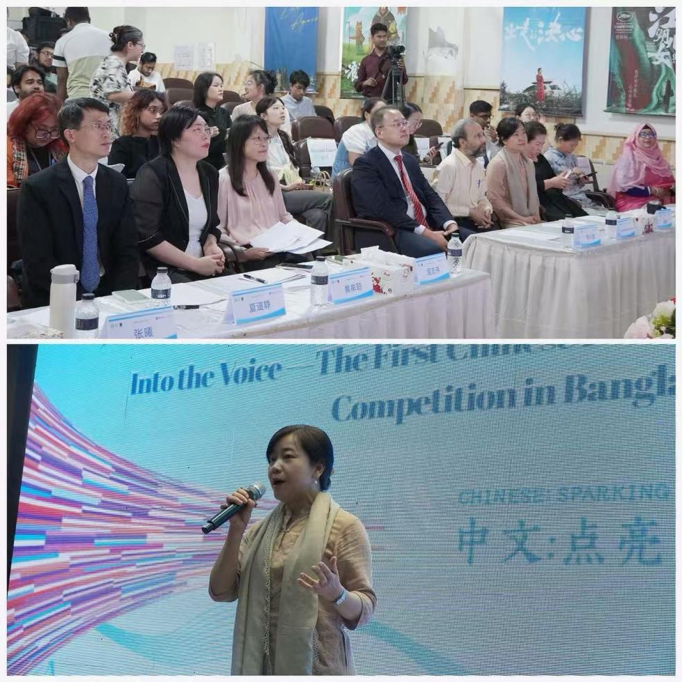 On April 18, 2026, to celebrate the 2026 International Chinese Language Day, the “In the Voice” — the First Chinese Film and TV Drama Dubbing Competition in Bangladesh, hosted by the Embassy of the People’s Republic of China in Bangladesh, organized by the Confucius Institute at University of Dhaka, and co-organized by the Institute of Modern Languages, University of Dhaka, Confucius Institute at North South University, and Shanto Mariam-Honghe Confucius Classroom, was successfully held at the auditorium of the Institute of Modern Languages, University of Dhaka. Mr. Li Shaopeng, Cultural Counselor of the Chinese Embassy in Bangladesh; Prof. Dr. Mohammad Absar Kamal, Director of the Institute of Modern Languages, University of Dhaka; Chinese directors of Confucius Institutes and Classroom in Bangladesh; representatives from Chinese language education institutions and media, faculty and students attended the event.