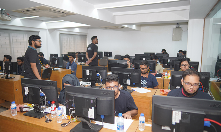 The environment was competitive yet collaborative, with participants showcasing their skills and pushing their limits across different academic backgrounds within the University of Dhaka.